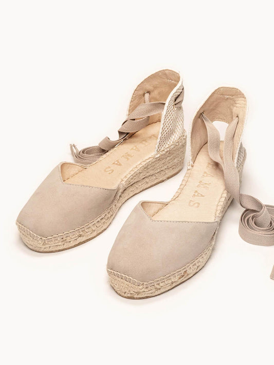 Nossas alpargatas com fitas são super confortáveis! Alpargatas artesanais costuradas à mão em La Rioja por nossos mestres artesãos. Alpargatas sustentáveis, feitas com materiais reciclados, naturais, orgânicos e uma seleção dos melhores couros certificados pelo "Leather Working Group". Alpargatas com fitas confortáveis graças à palmilha acolchoada que cobre toda a planta do pé. Alpargatas confortáveis com salto anabela de 10 centímetros que você usará o dia todo. Suas alpargatas com fitas podem ser amarradas de diferentes maneiras. Alpargatas com um toque rural chique, atemporais, essenciais no guarda-roupa, com um toque de cor e originalidade.