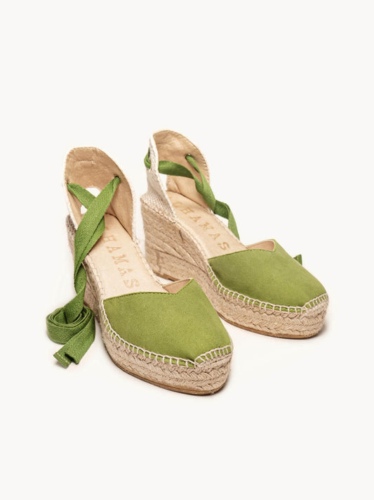 Sandália Anabela Média Plataforma Romero Camurça Verde