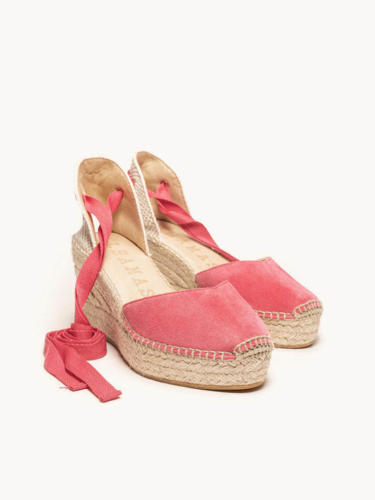Sandália Anabela Alta Romero Camurça Rosa Claro