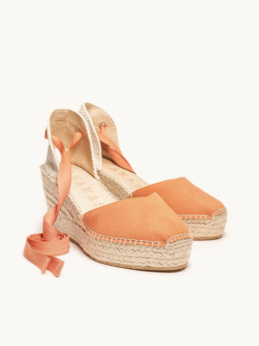 Sandália Anabela Média Plataforma Romero Camurça Laranja Claro