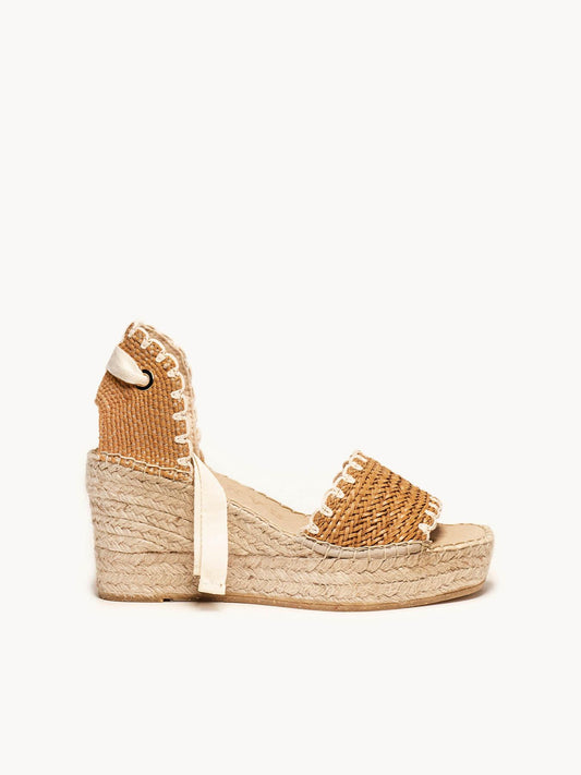 Sandália Anabela Média Aulaga Fita Arcos Marrom Claro