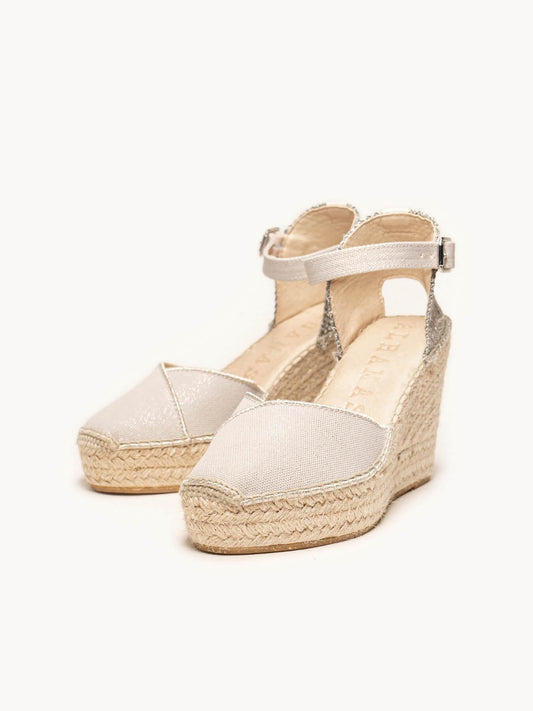 Nossas alpargatas com pulseira são super confortáveis! Alpargatas artesanais costuradas à mão em La Rioja por nossos mestres artesãos. Alpargatas sustentáveis, feitas com materiais reciclados, naturais, orgânicos e uma seleção dos melhores couros certificados pelo "Leather Working Group". Alpargatas com pulseira confortáveis graças à palmilha acolchoada que cobre toda a planta do pé. Alpargatas confortáveis com salto anabela de 10 centímetros que você usará o dia todo. Suas alpargatas com pulseira podem ser ajustadas como você quiser, pois possuem vários furos para se adaptar ao seu tornozelo. Alpargatas com um toque rural chique, atemporais, essenciais no guarda-roupa, com um toque de cor e originalidade.