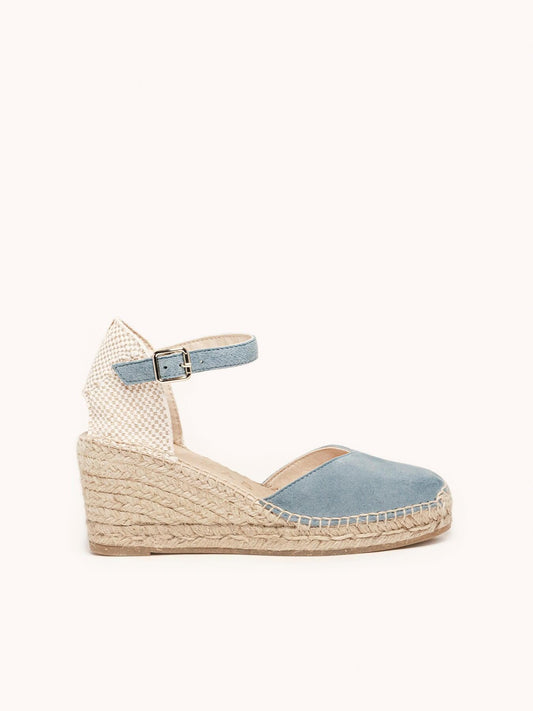 Sandália Anabela Média Jara Camurça Azul Jeans