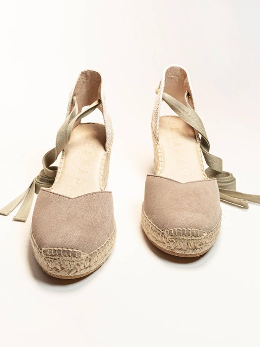 Sandália Anabela Alta Romero Camurça Bege