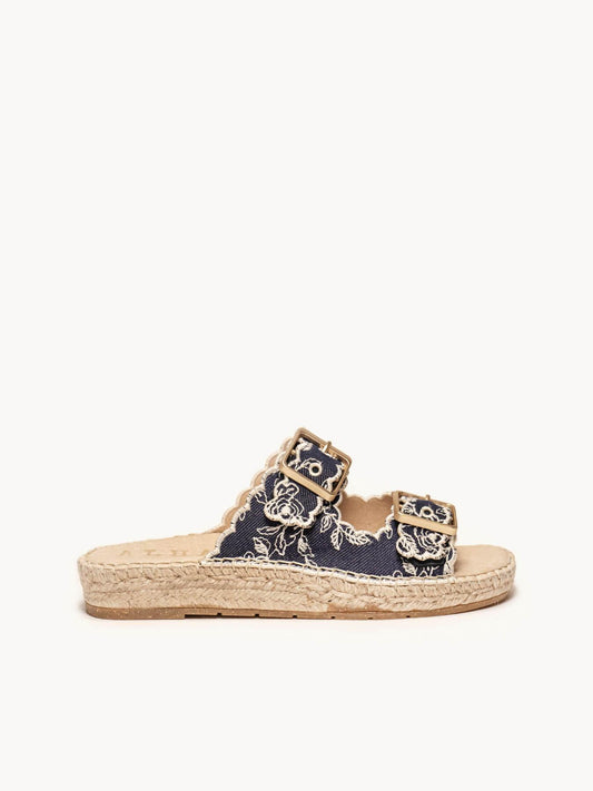 Sandália Papete Girasol Jeans Bordada Azul Marinho