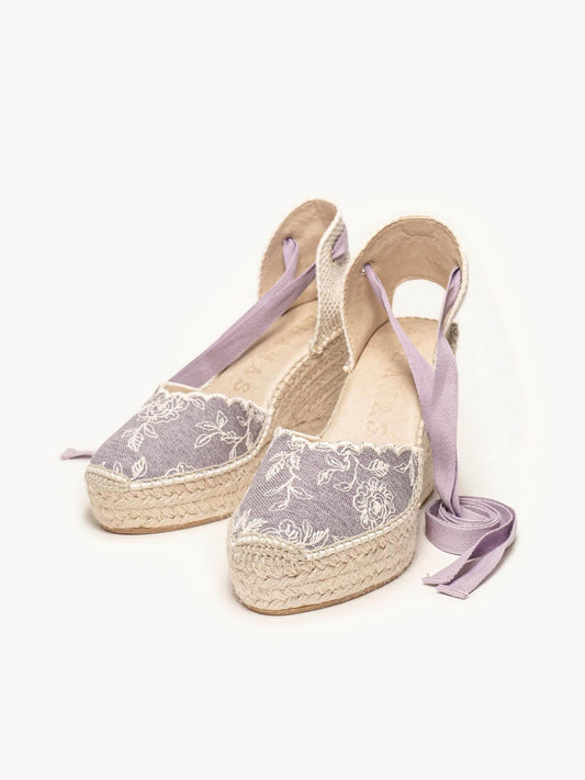Alhamas são alpargatas confortáveis, pois a palmilha acolchoada que colocamos na planta faz delas as alpargatas mais confortáveis do mundo. Alpargatas de cunha alta, alpargatas de cunha média, alpargatas plataforma e alpargatas rasteiras são as quatro alturas que a Alhamas oferece em sua coleção. Você também encontrará alpargatas com fita e alpargatas com pulseira, bailarinas, slippers e até botas e botins de meia-estação com cunha. Também dispomos de acessórios como fitas de algodão para alpargatas em diversas cores, além de lenços, para que você possa combinar e dar um toque diferenciado às suas alpargatas Alhamas. Alpargatas costuradas à mão em La Rioja por nossos mestres artesãos, feitas artesanalmente como nossos avós faziam por toda a vida — com paciência e ponto a ponto.
