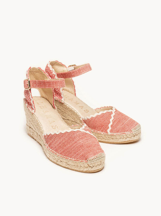 Sandália Anabela Média Jara Linho Mesclado Vermelho