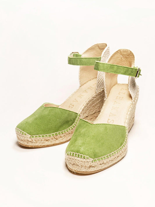 Sandália Anabela Média Jara Camurça Verde Clara