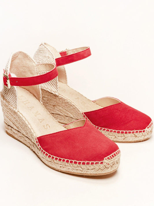 Sandália Anabela Média Jara Camurça Vermelha