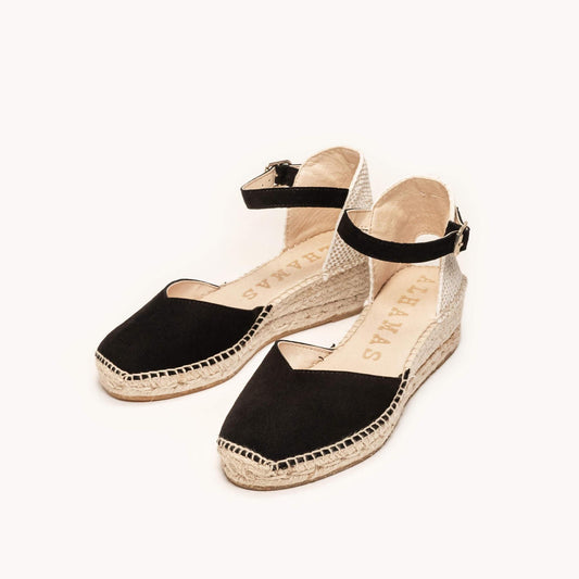 Sandália Anabela Baixa Jara Camurça Preto