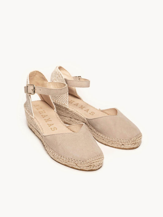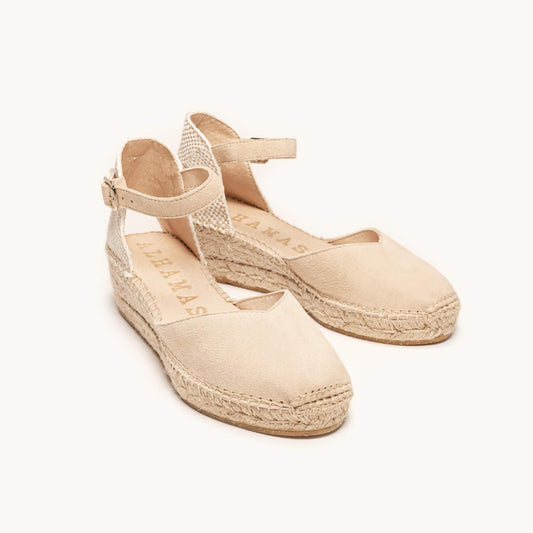 Sandália Anabela Baixa Jara Camurça Areia