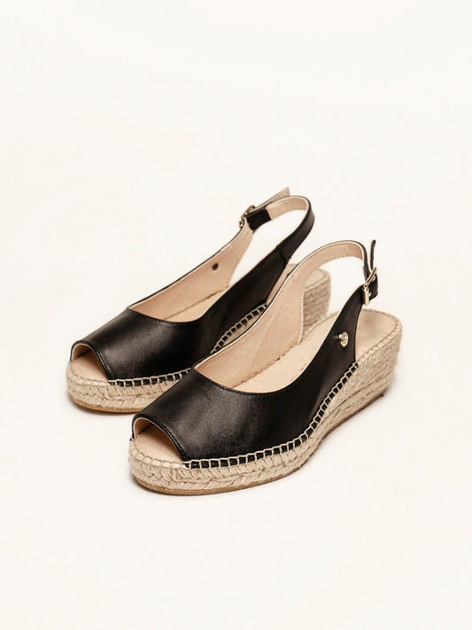 Sandália Anabela Baixa Clavel Napa Preto