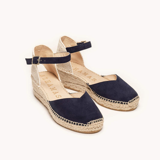 Sandália Anabela Baixa Jara Camurça Azul Marinho