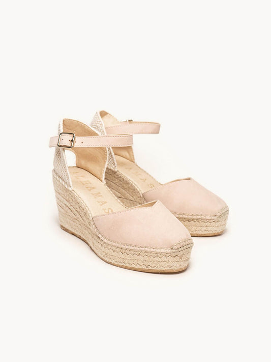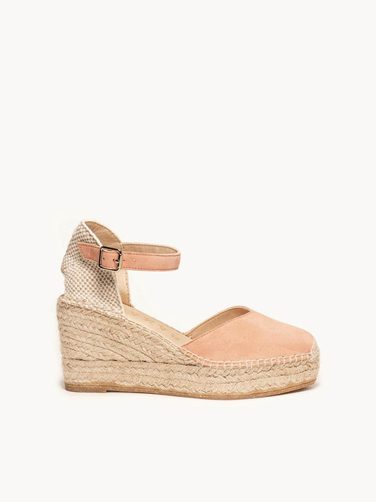 Sandália Anabela Média Plataforma Jara Camurça Rosa Claro