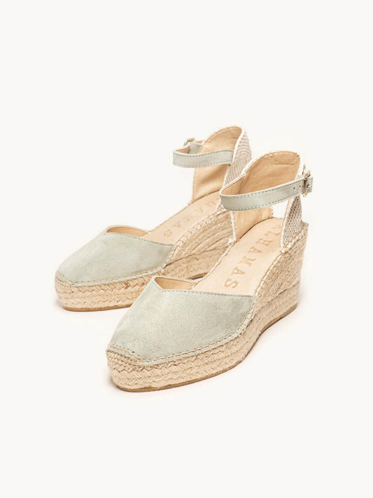 Sandália Anabela Média Plataforma Jara Camurça Verde Claro