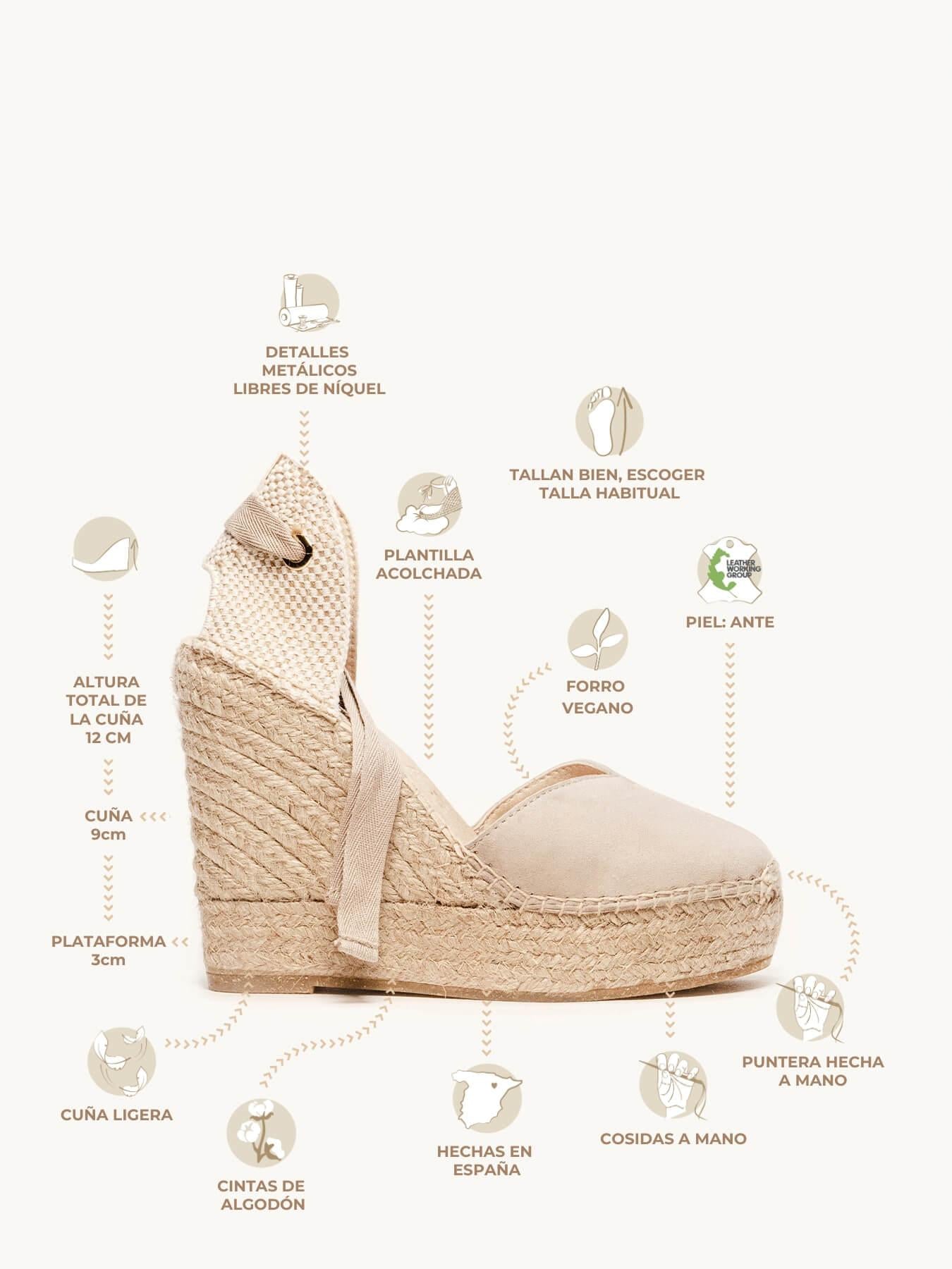 Alpargata Anabela Alta: 12 cm no total (8,5 cm de plataforma + 3,5 cm de salto).
