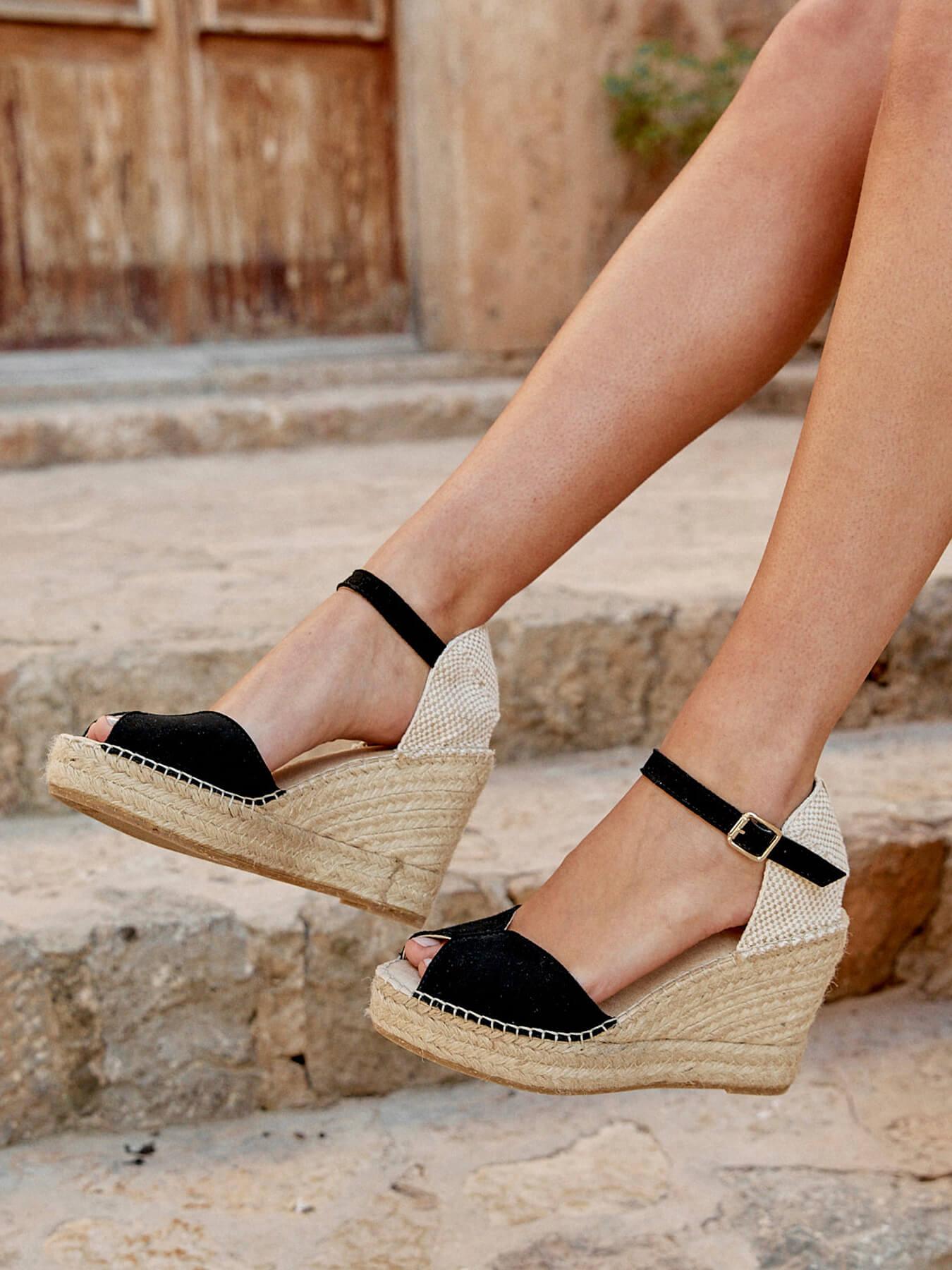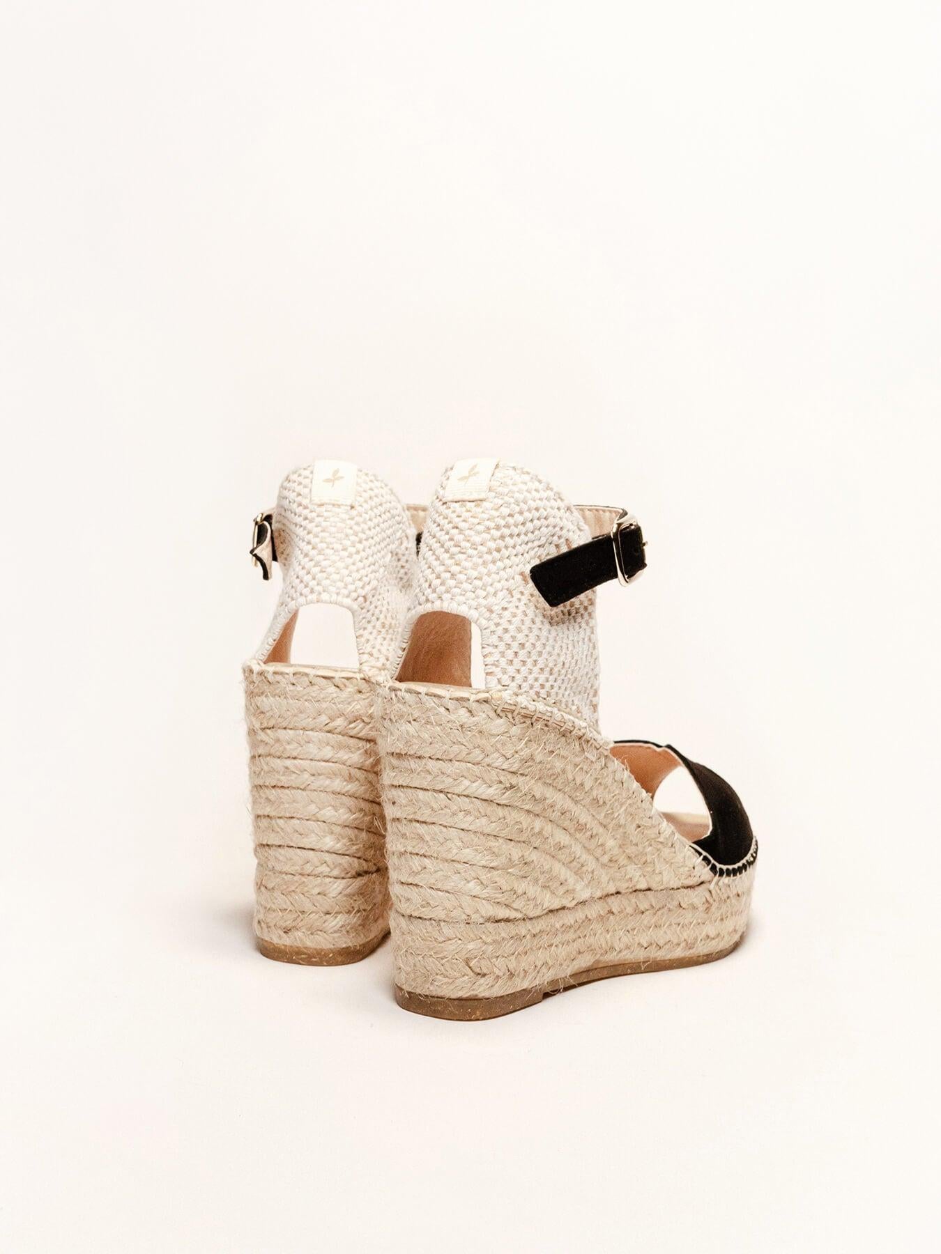 Sandália Anabela Alta Alelí Camurça Preto