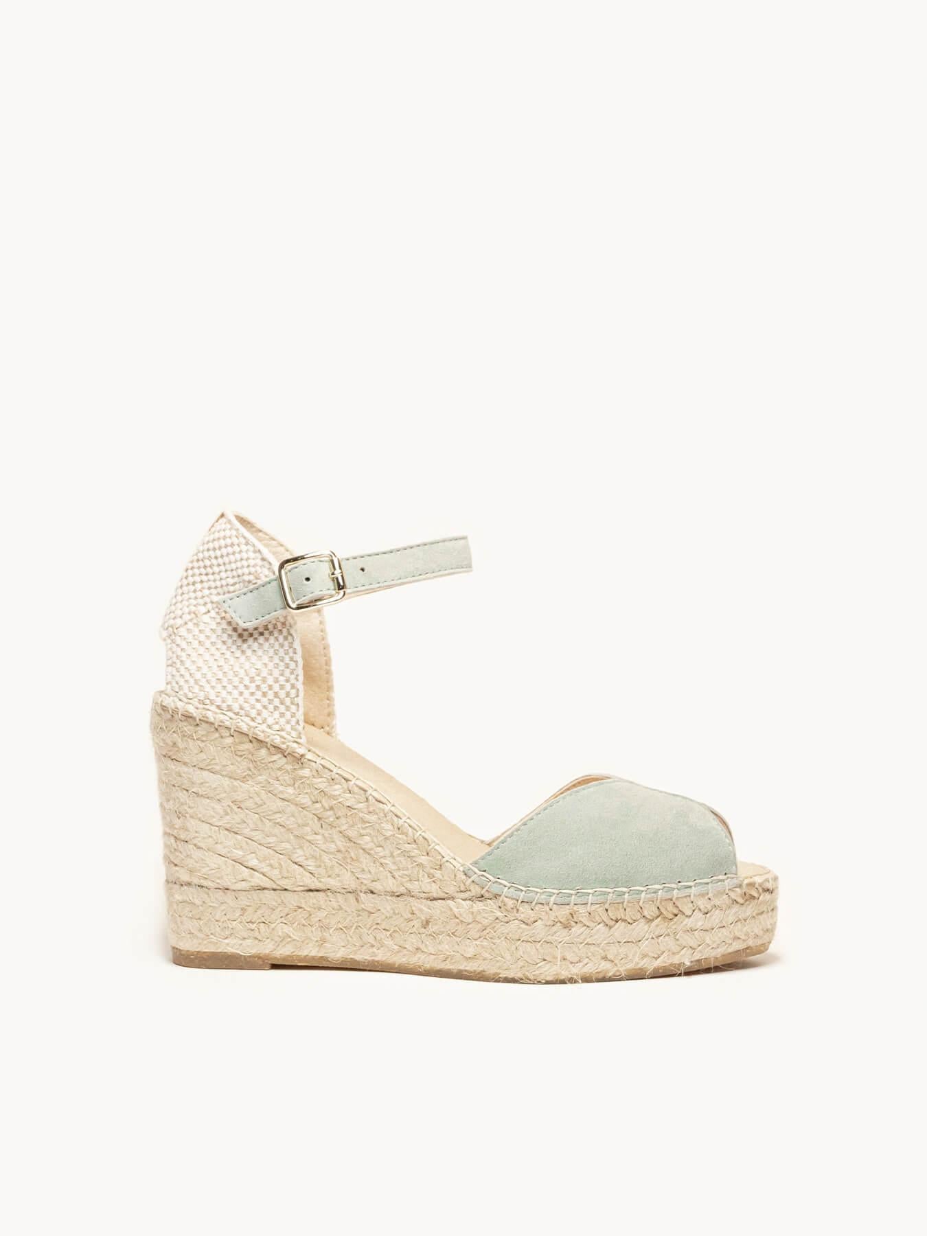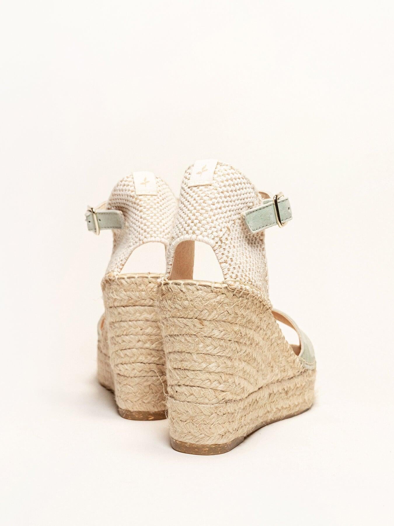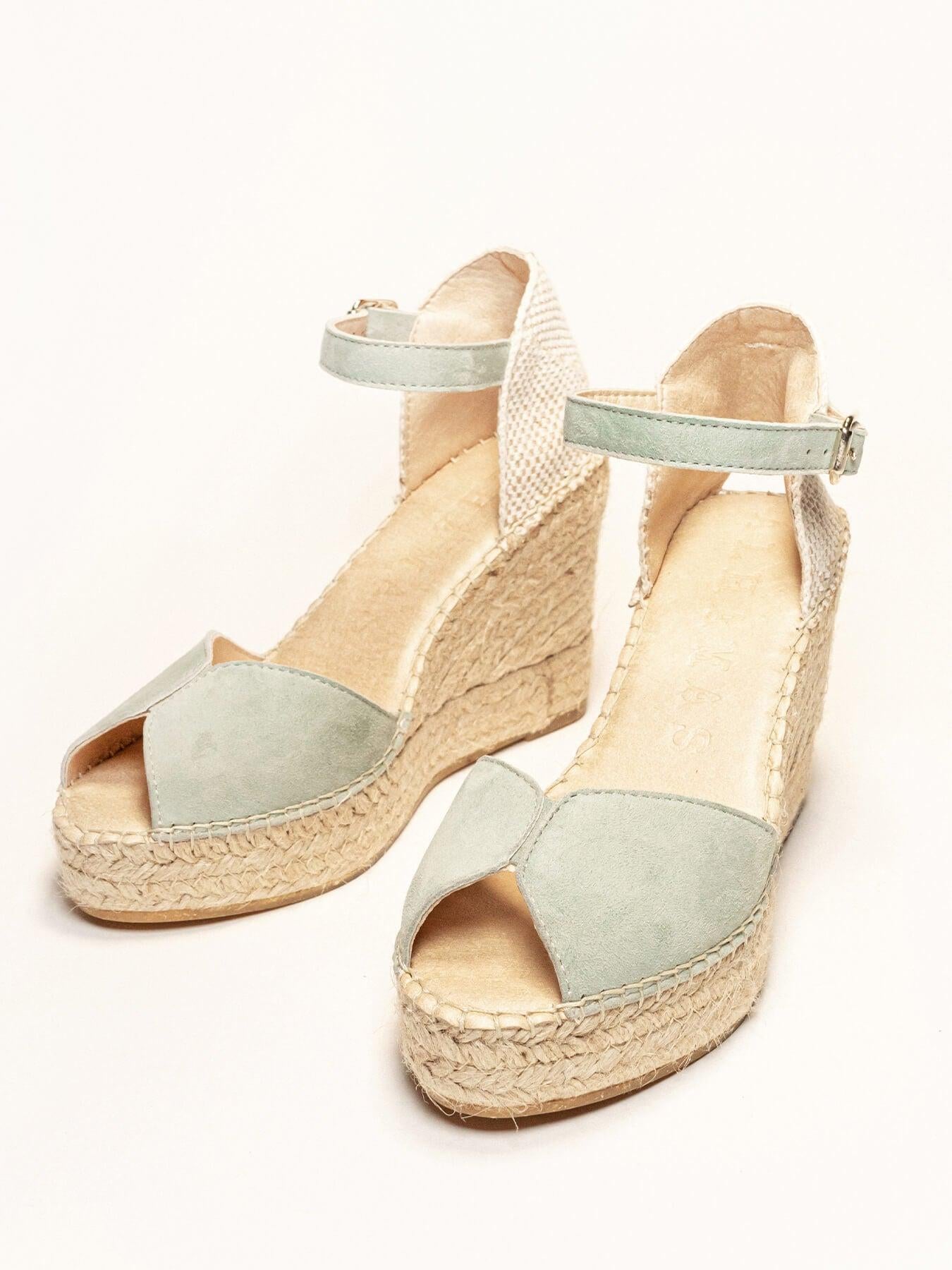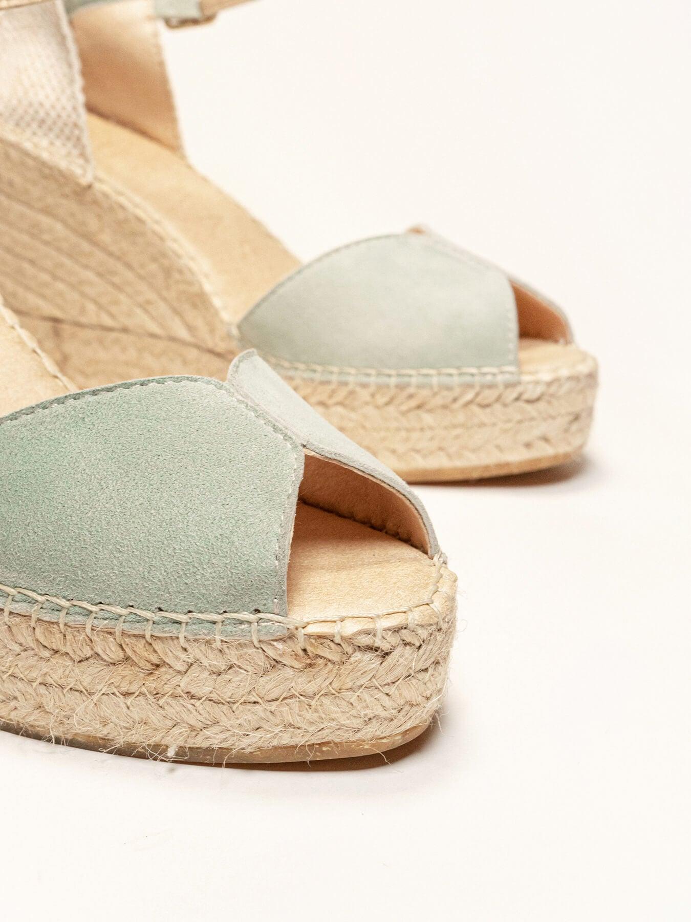 Sandália Anabela Alta Alelí Camurça Verde Claro