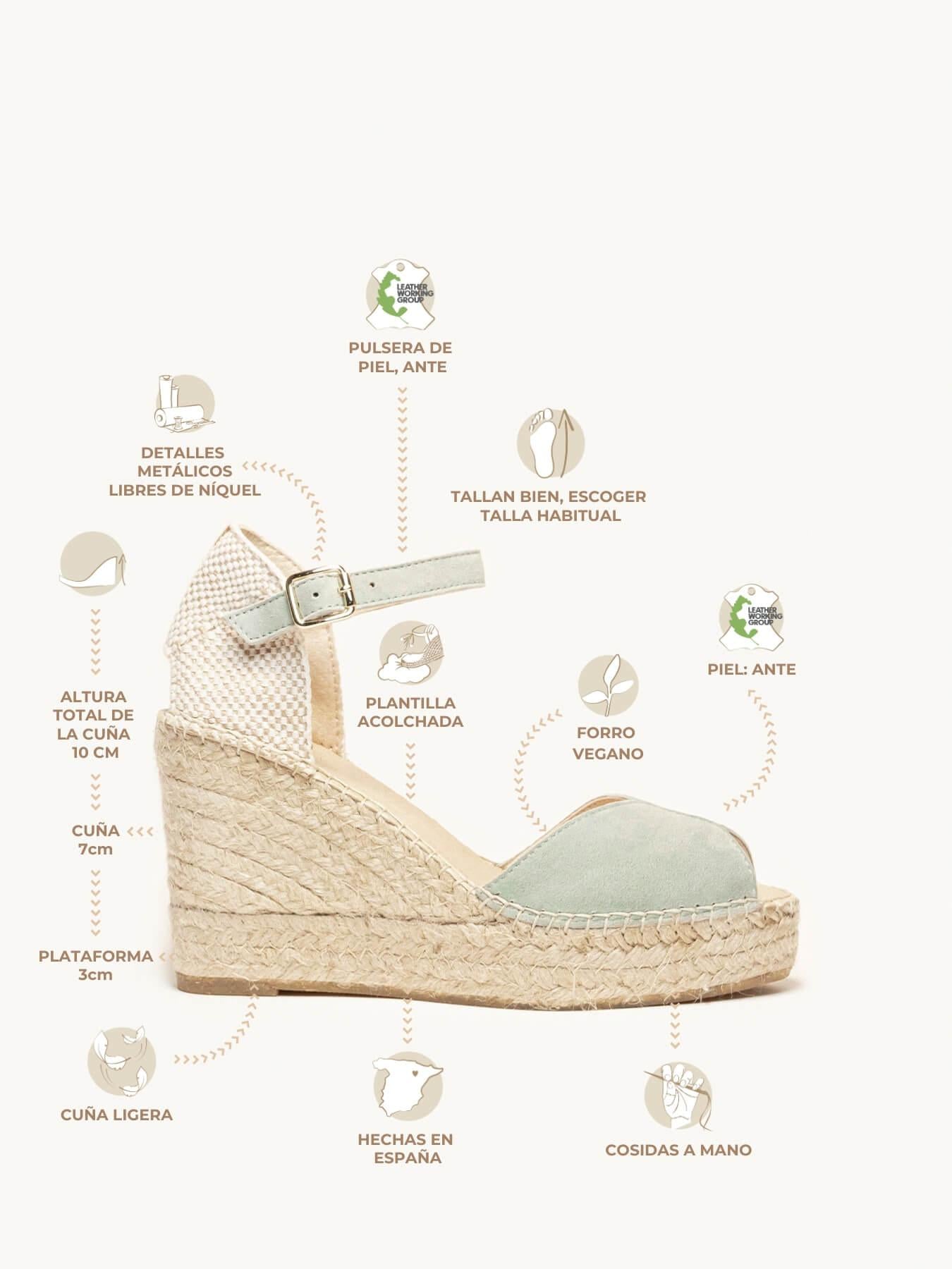 - A camurça da sandália Alelí está certificada pelo Leather Working Group (uma organização que promove práticas ambientais sustentáveis)