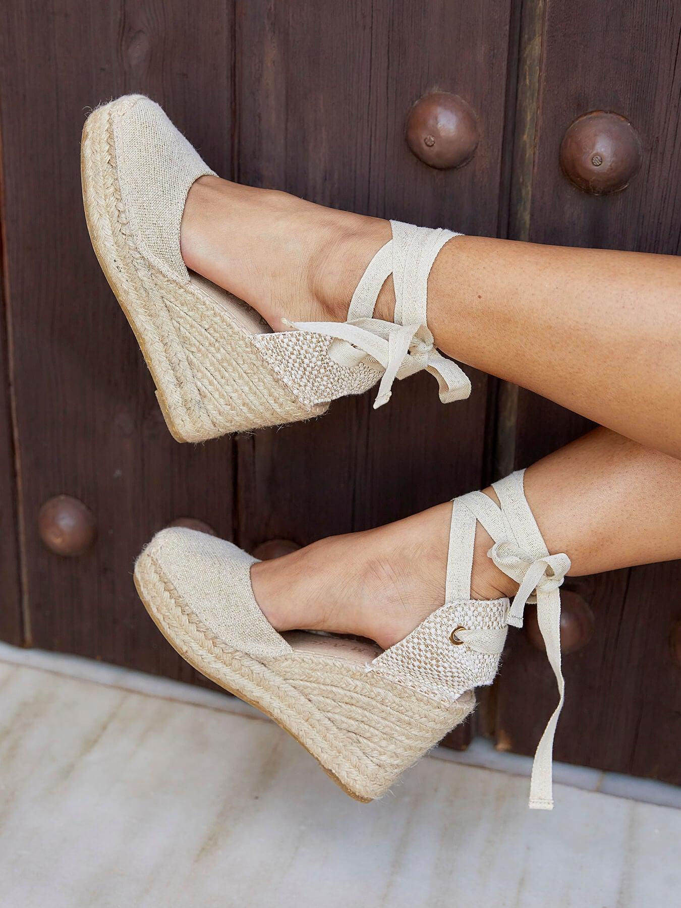Alpargata Anabela Alta: 10 cm no total (3 cm de plataforma + 7 cm de salto).