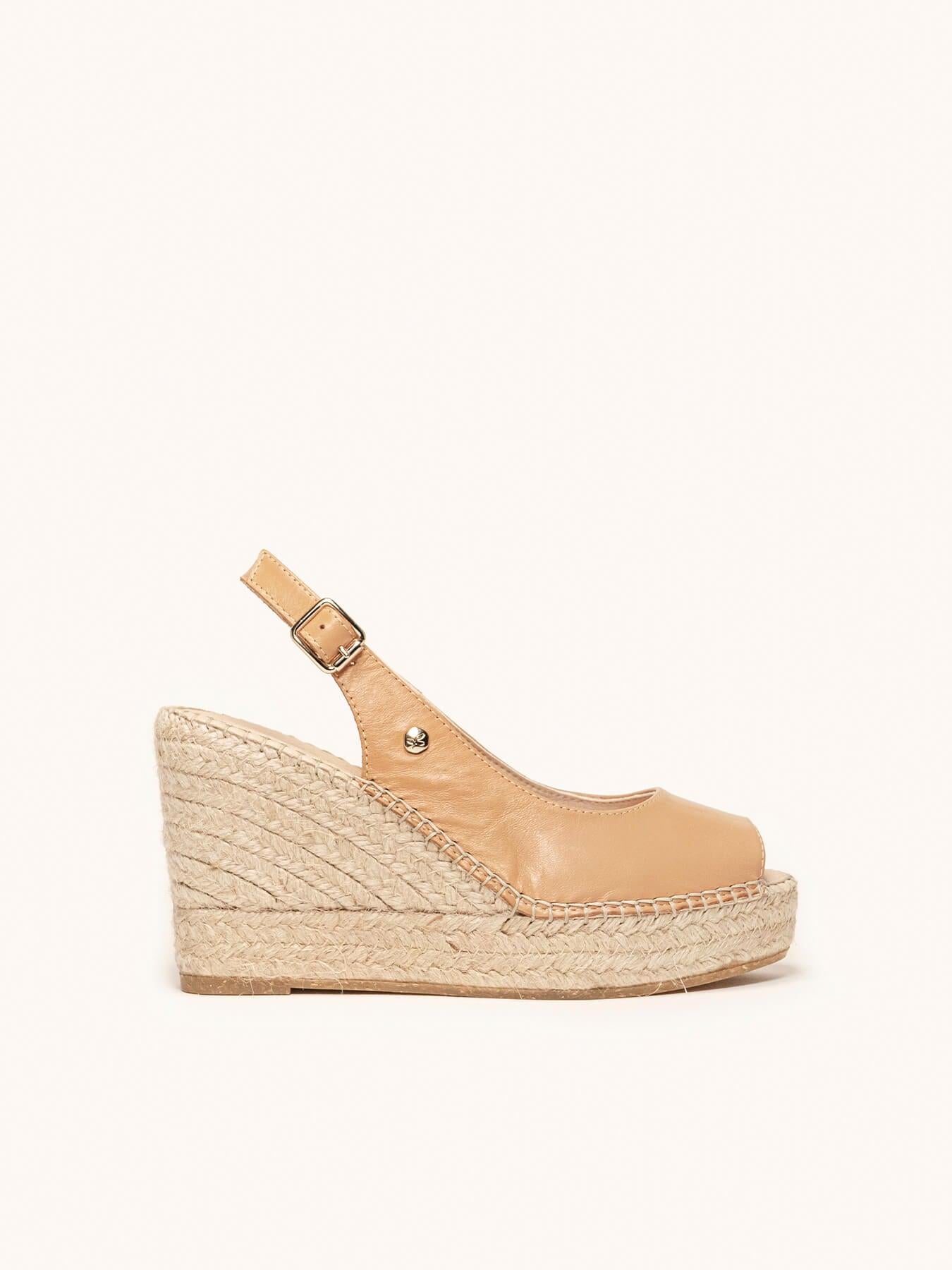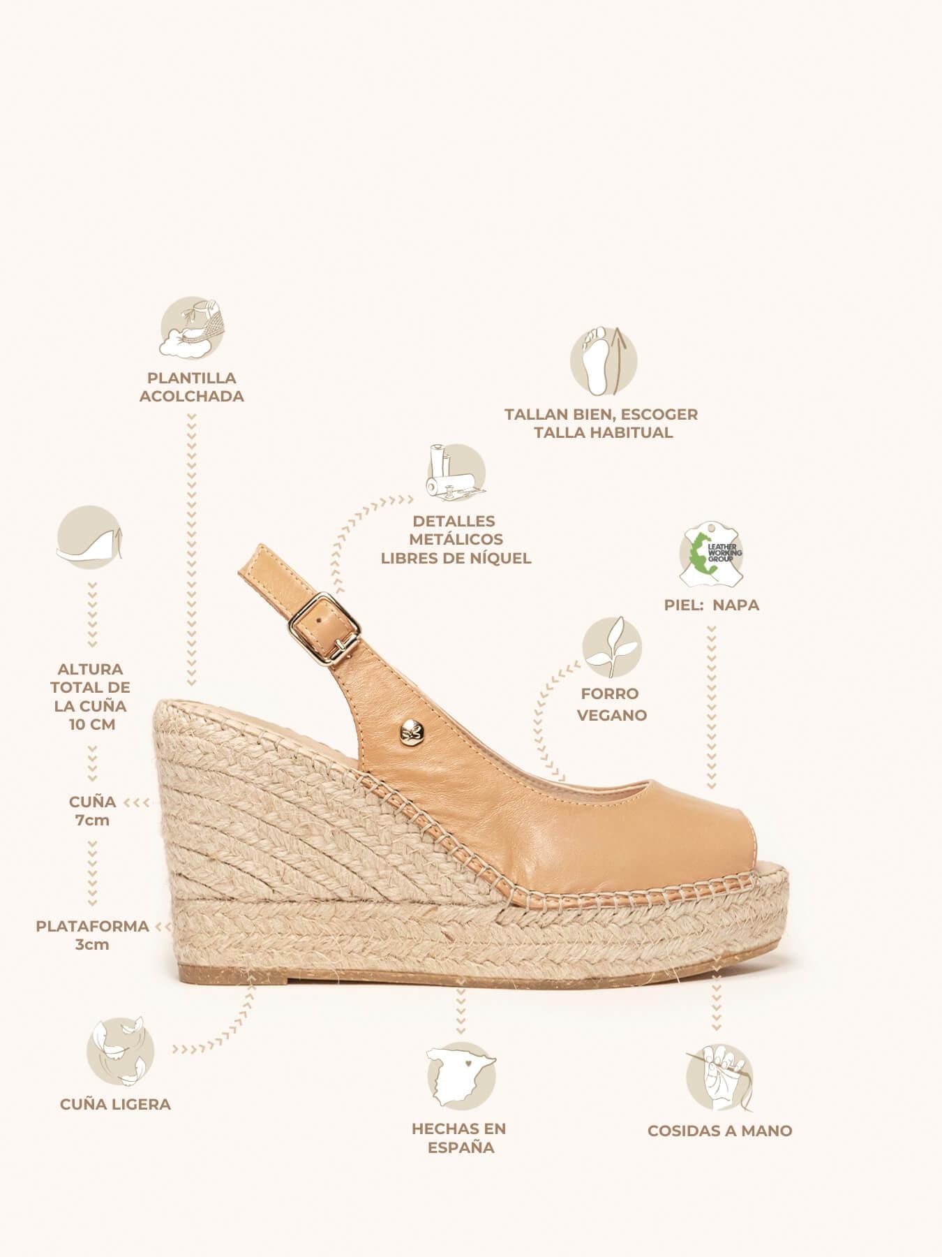 A sandália de anabela alta Clavel é uma das nossas favoritas. O nosso modelo tipo salón com decote redondo é um modelo muito versátil, ideal para o dia a dia e também para dar um toque muito chique aos looks mais especiais. As sandálias com anabela estilo salón ajustam-se muito bem ao tornozelo, você ficará super confortável durante todo o dia.