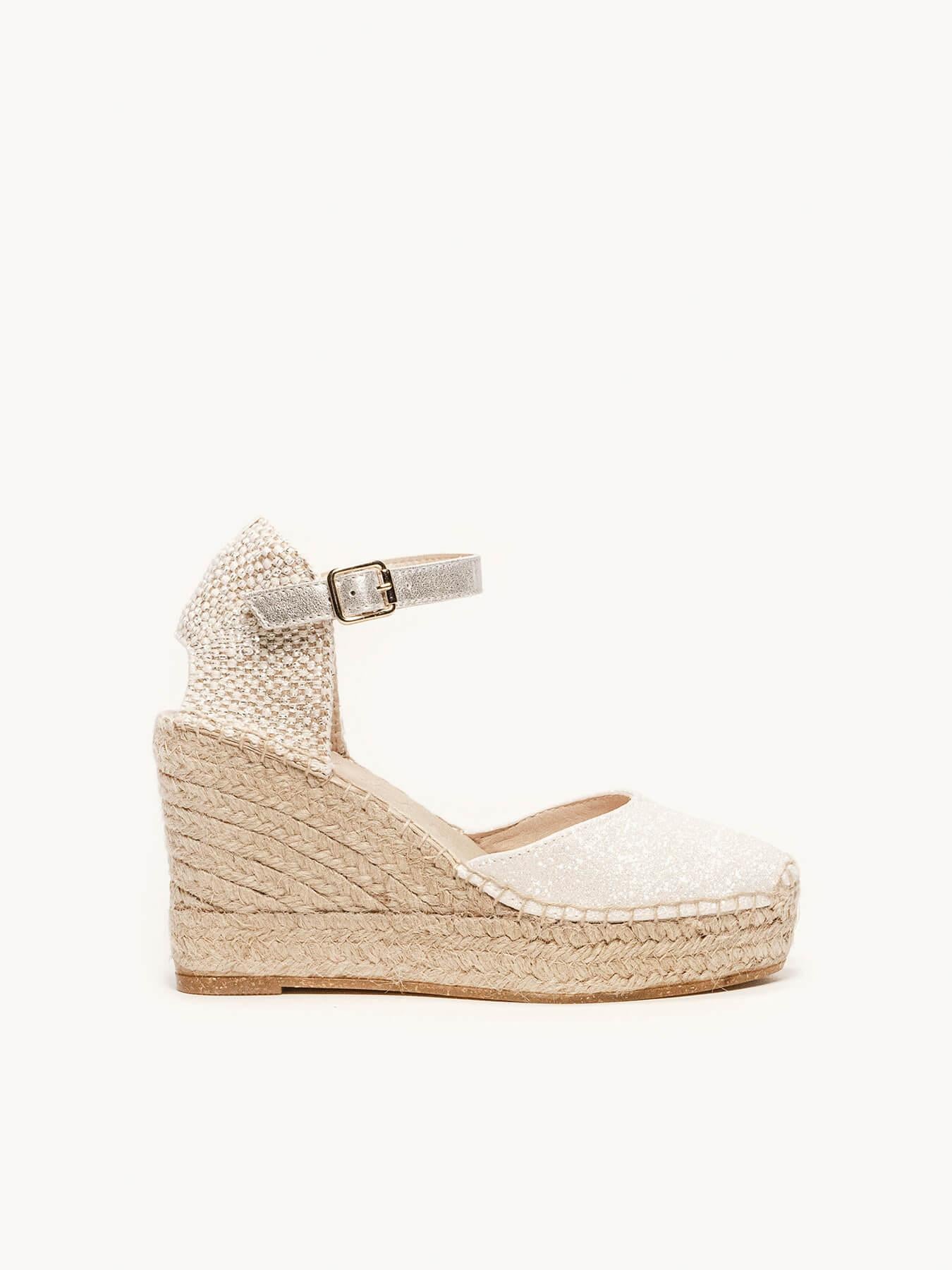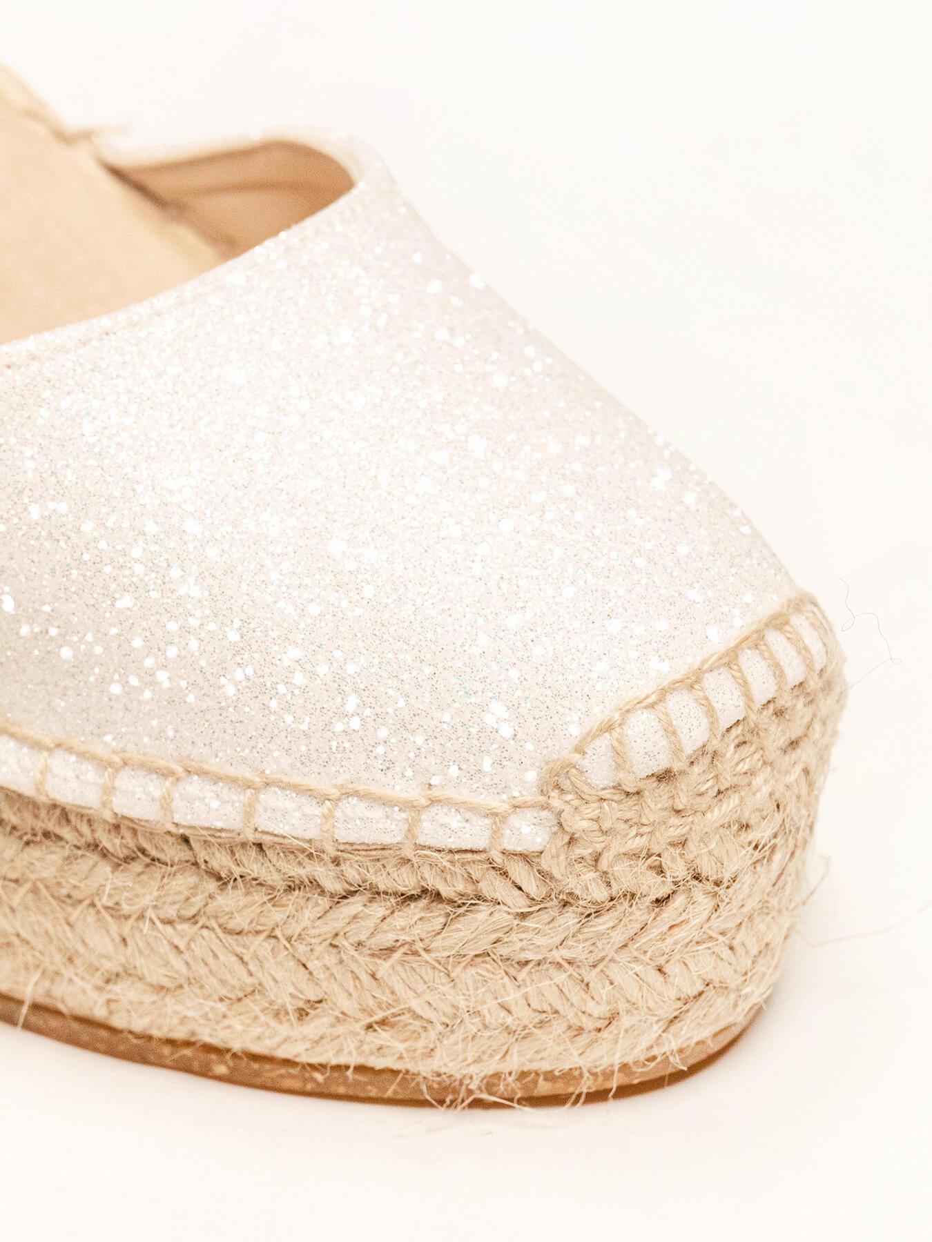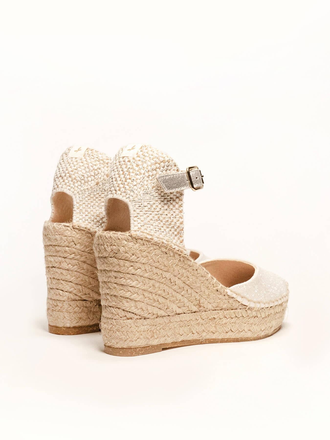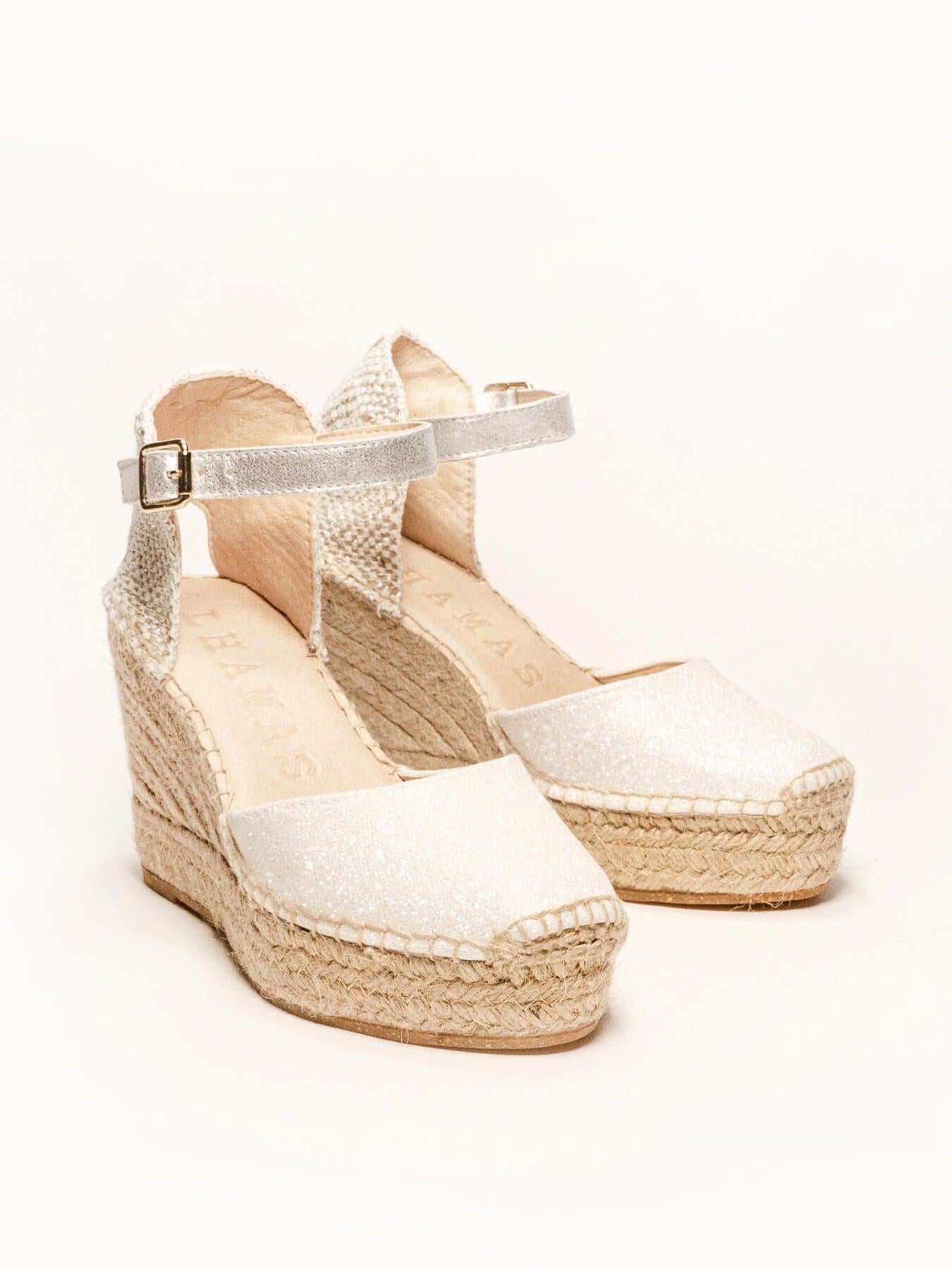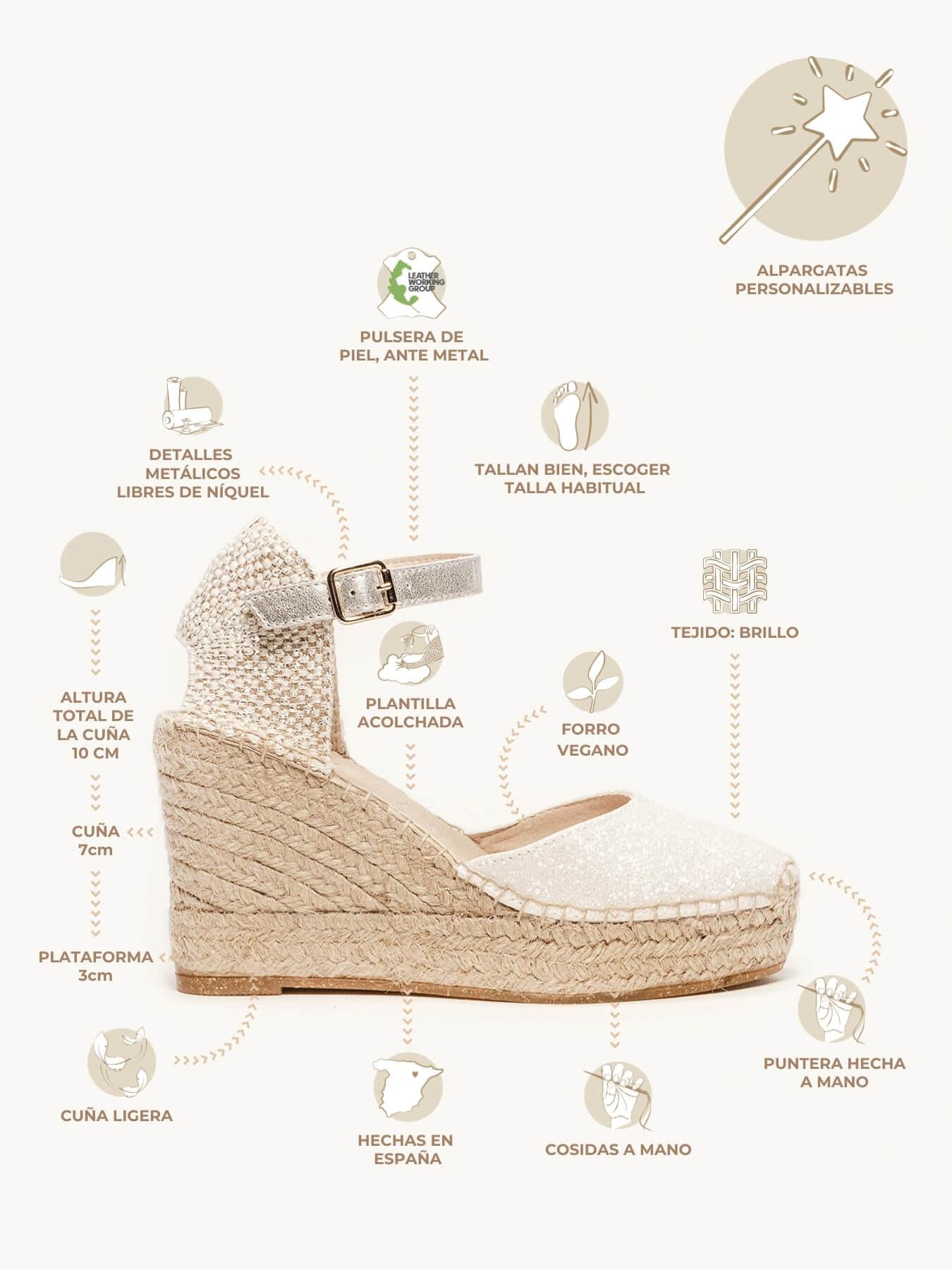 A alpargata de anabela alta Dalia é um dos nossos modelos mais especiais, perfeita para o seu dia. As alpargatas de noiva que você poderá escolher como primeira opção ou como alpargatas de troca. Você manterá a altura