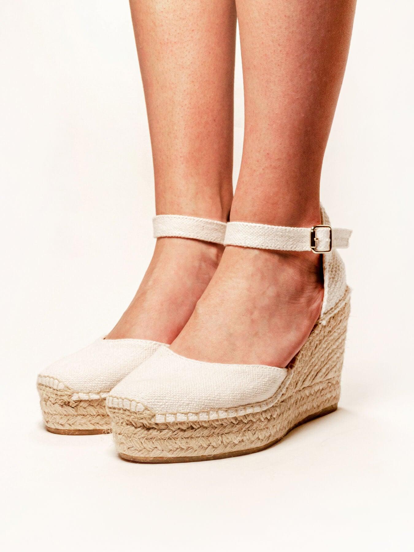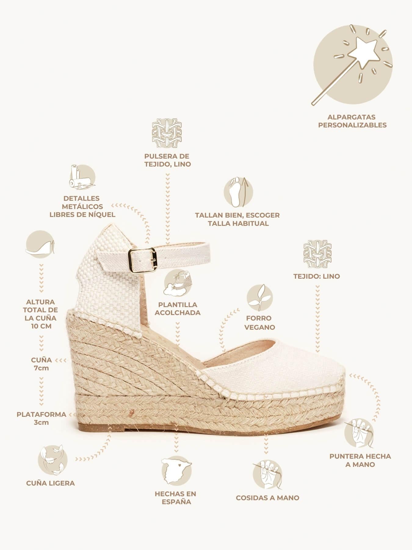 A alpargata de anabela alta Dalia é um dos nossos modelos mais especiais, perfeita para o seu dia. As alpargatas de noiva que você poderá escolher como primeira opção ou como alpargatas de troca. Você manterá a altura