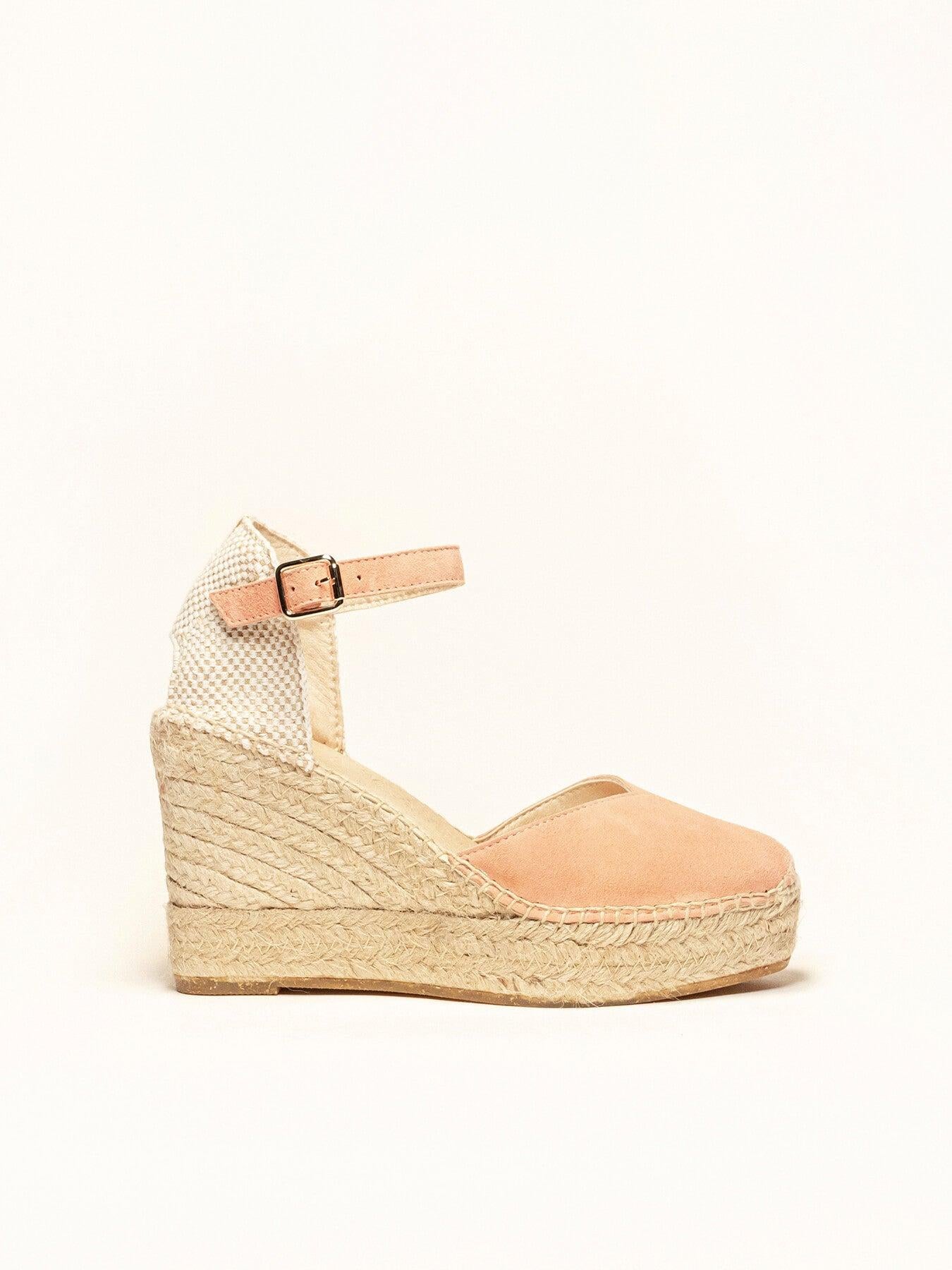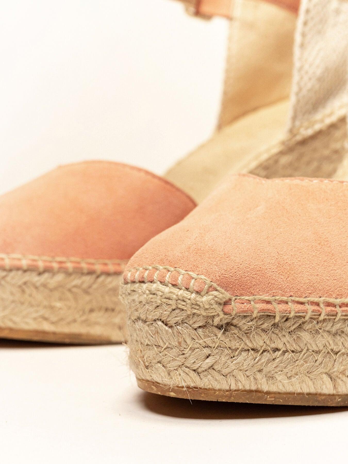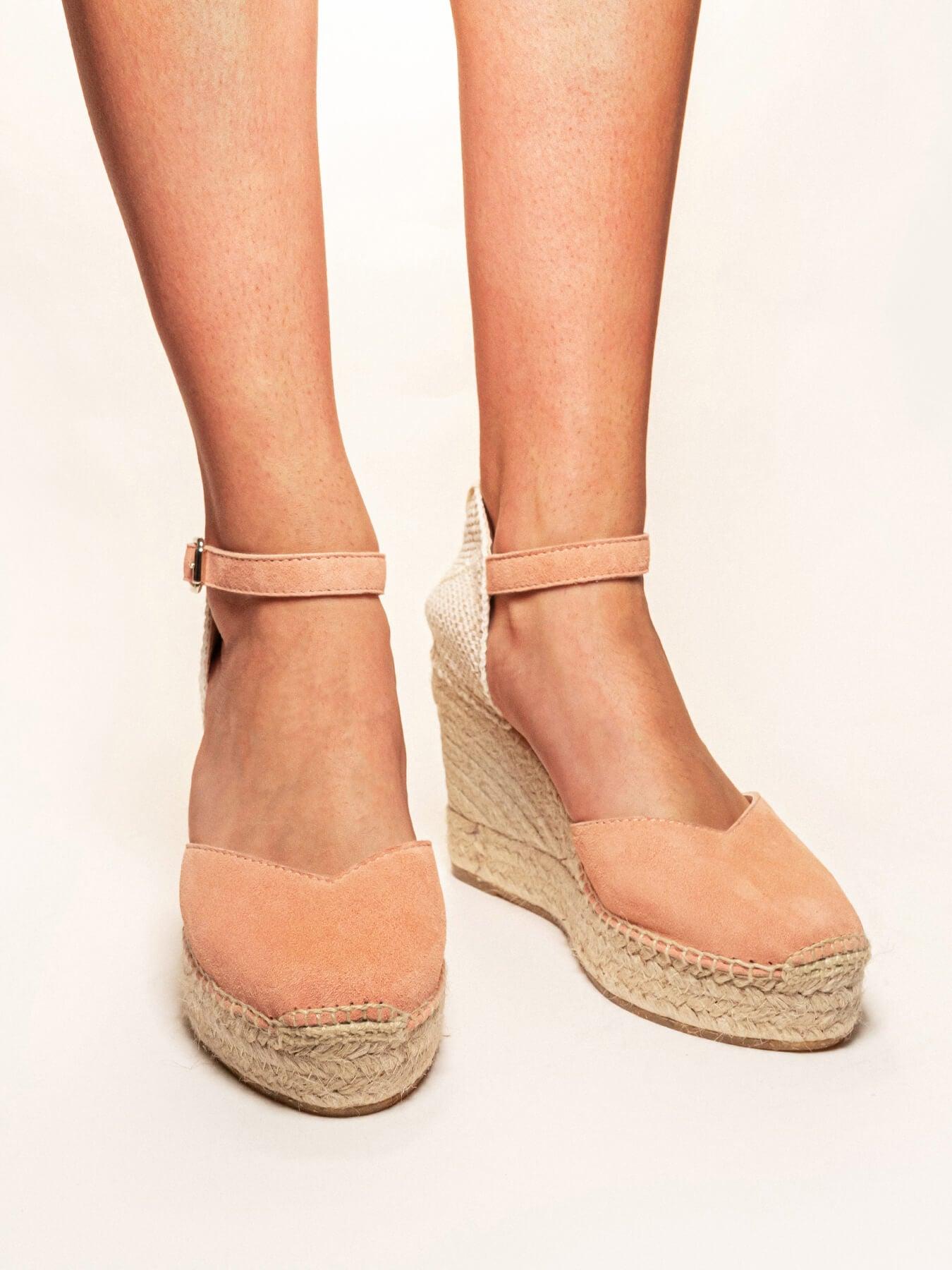 Sandália Anabela Alta Jara Camurça Laranja Claro