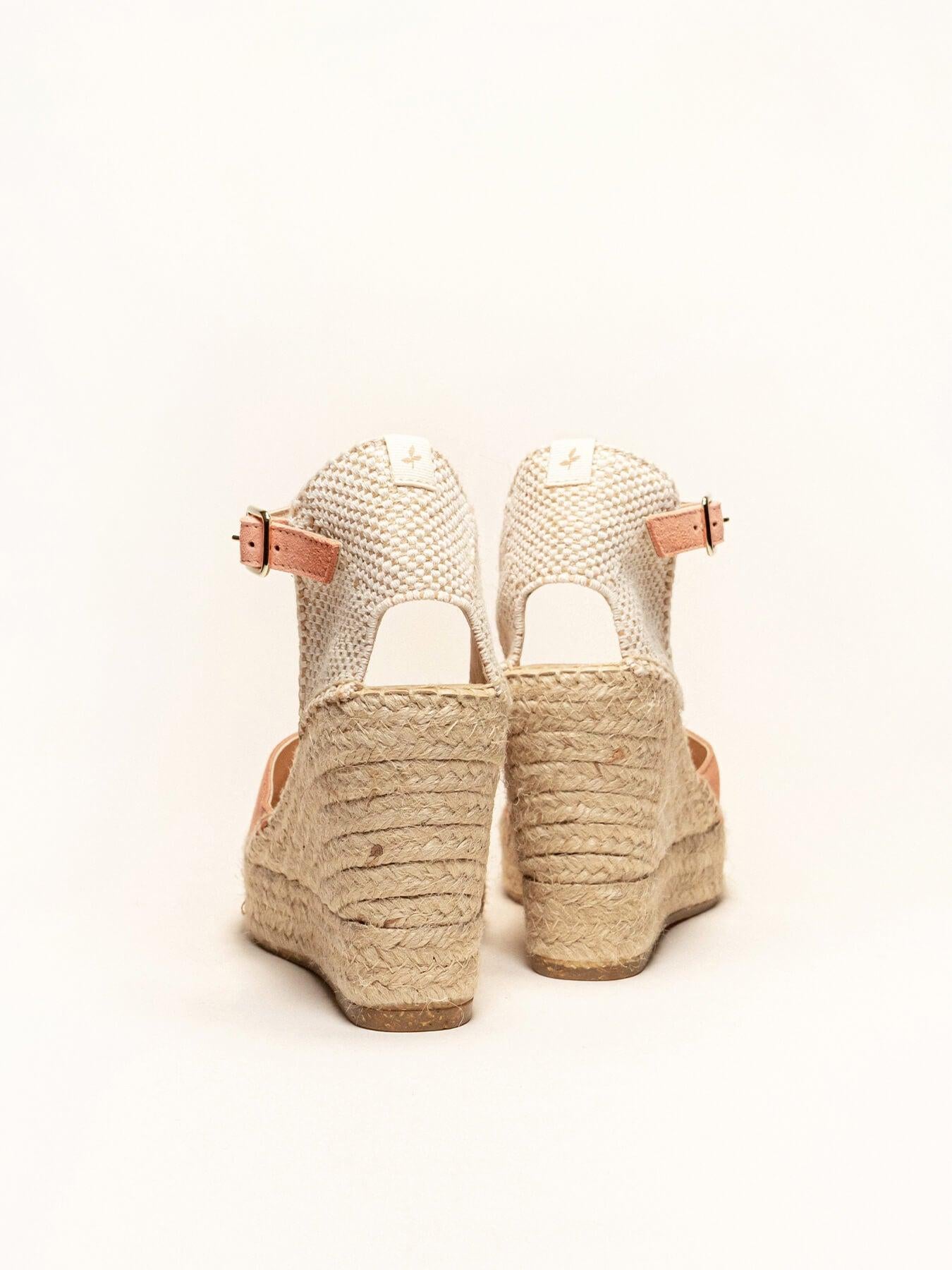 - Anabela de trança de juta natural com sola de borracha reciclada, misturada com fibras naturais