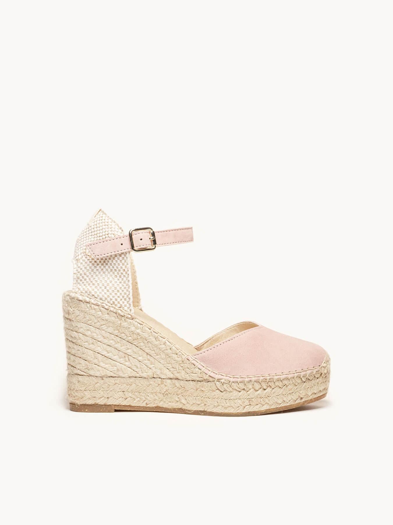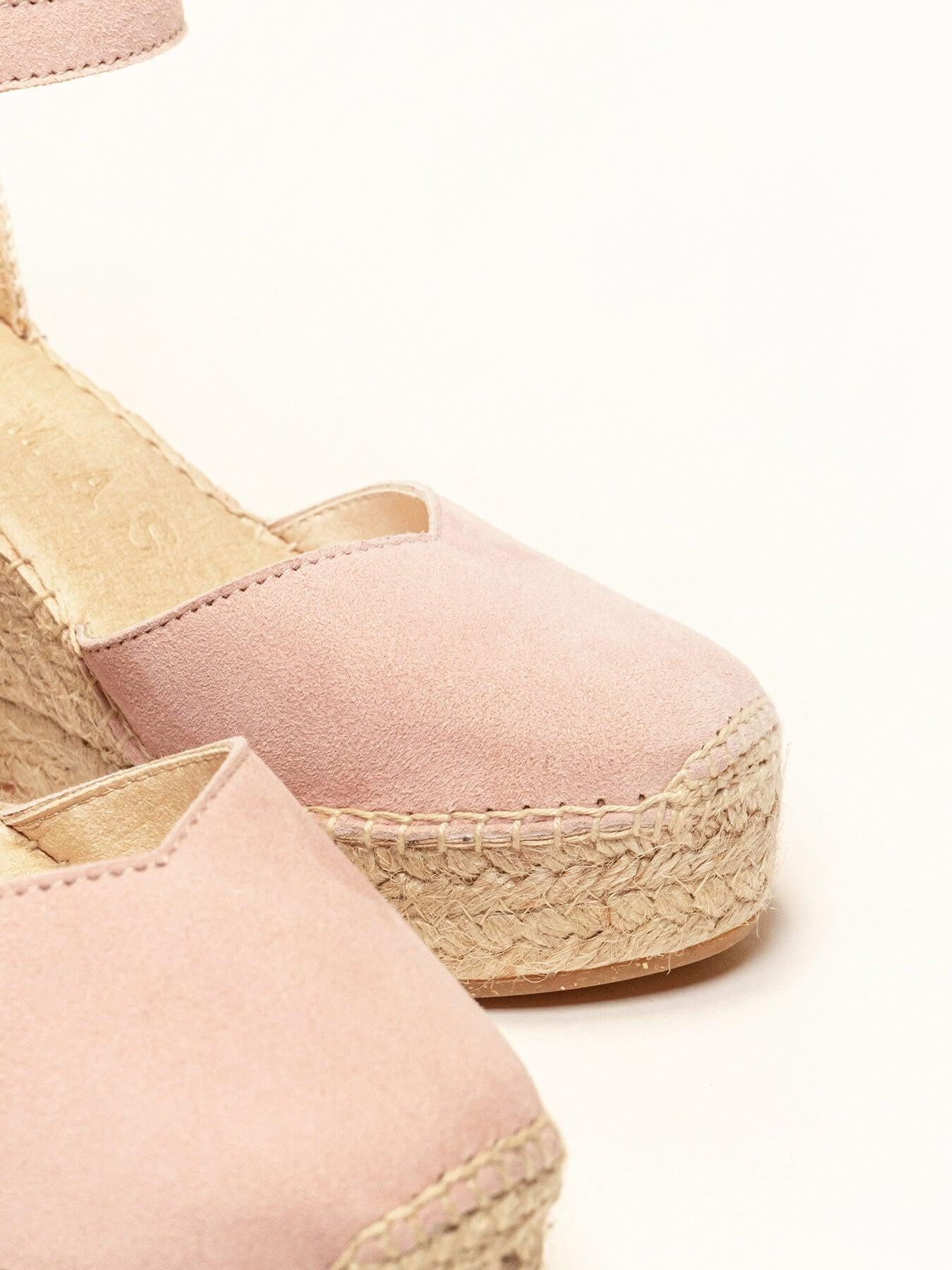 Sandália Anabela Alta Jara Camurça Rosa Clara