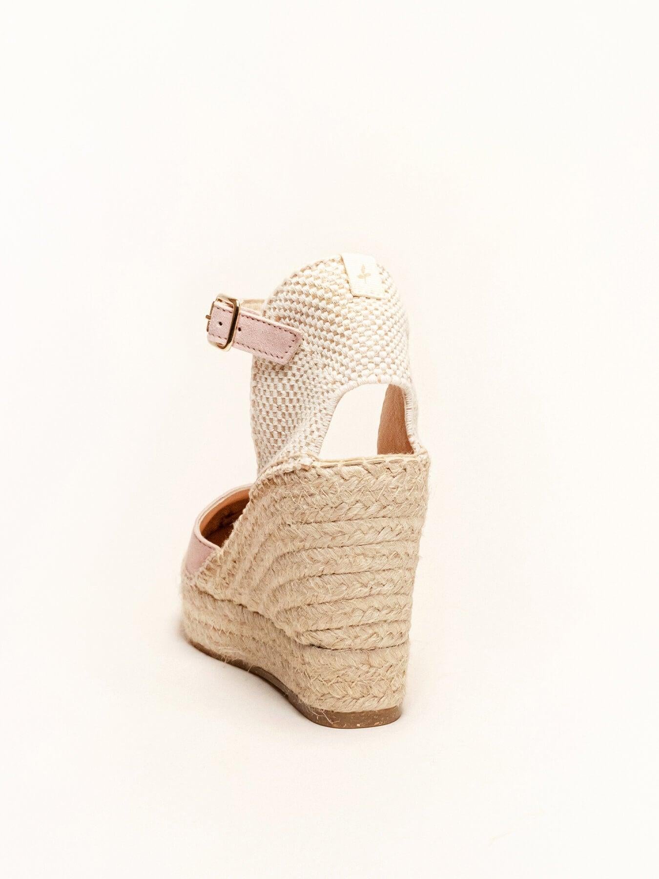 - Anabela de trança de juta natural com sola de borracha reciclada, misturada com fibras naturais.