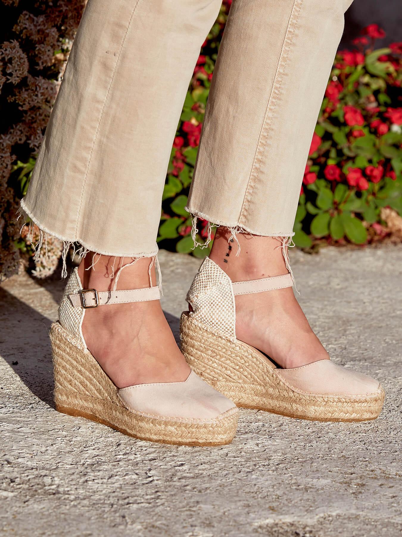 A alpargata de anabela alta com tira Jara é uma das nossas favoritas. Uma alpargata com tira e decote coração muito versátil, ideal para o dia a dia e também para dar um toque muito chique aos looks mais especiais. As alpargatas com anabela e tira prendem-se muito bem ao tornozelo, você estará super confortável durante todo o dia.