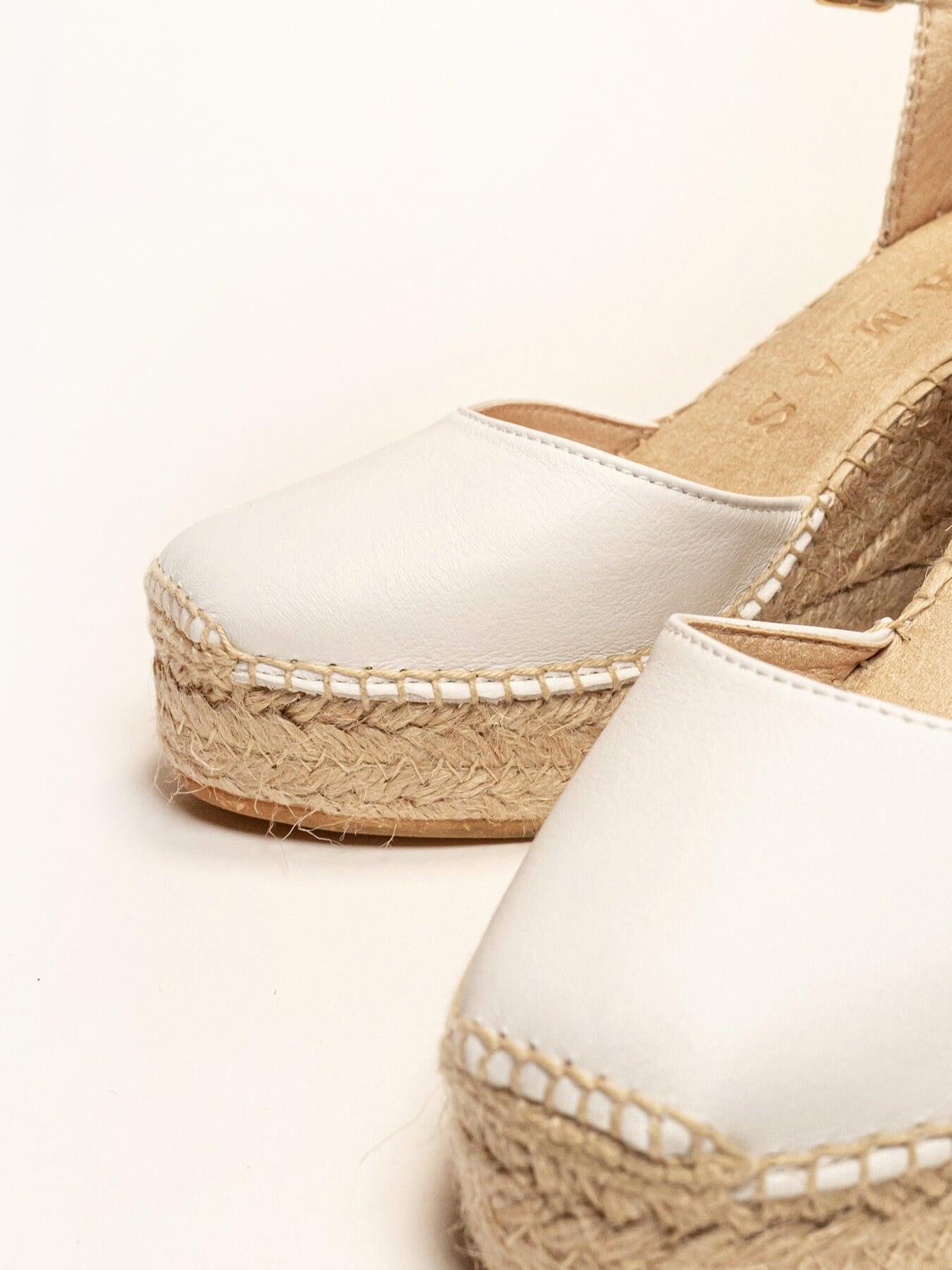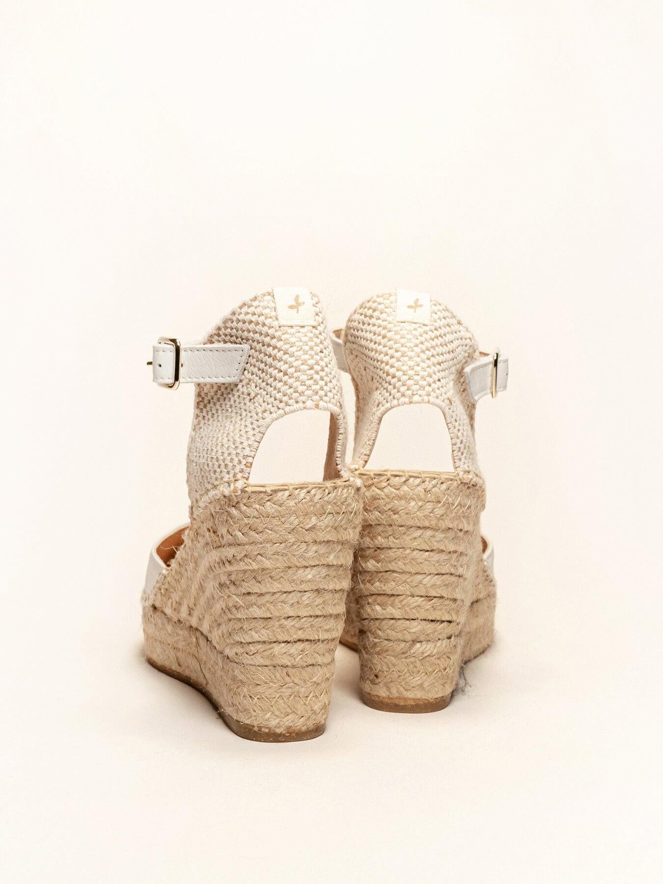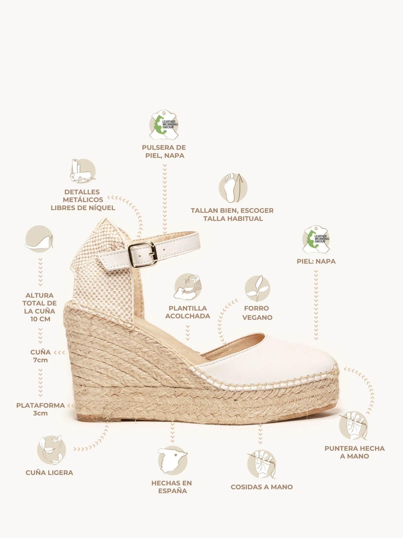 - Anabela trançada de juta natural com sola de borracha reciclada misturada com fibras naturais