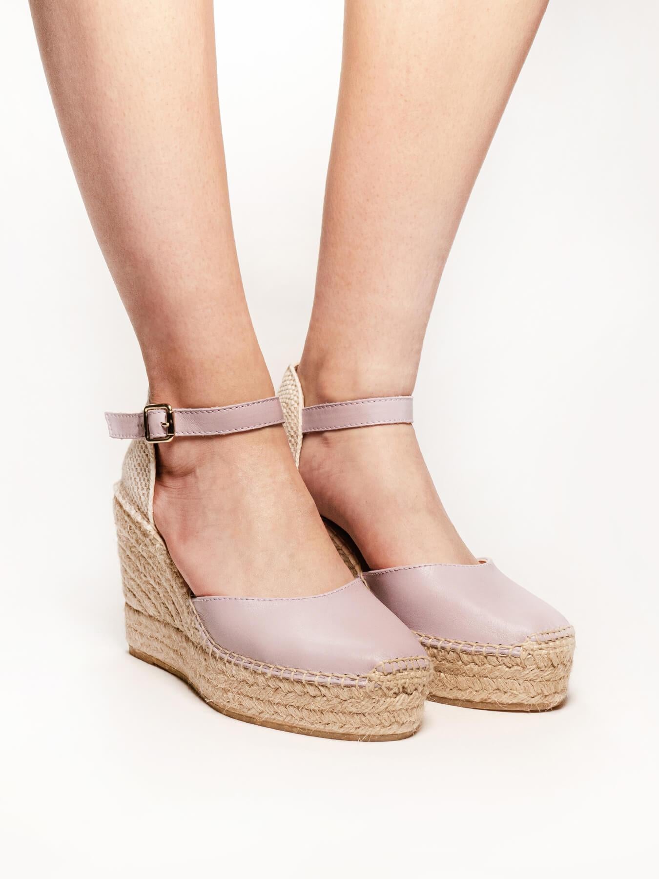 Sandália Anabela Alta Marga Napa Lilás