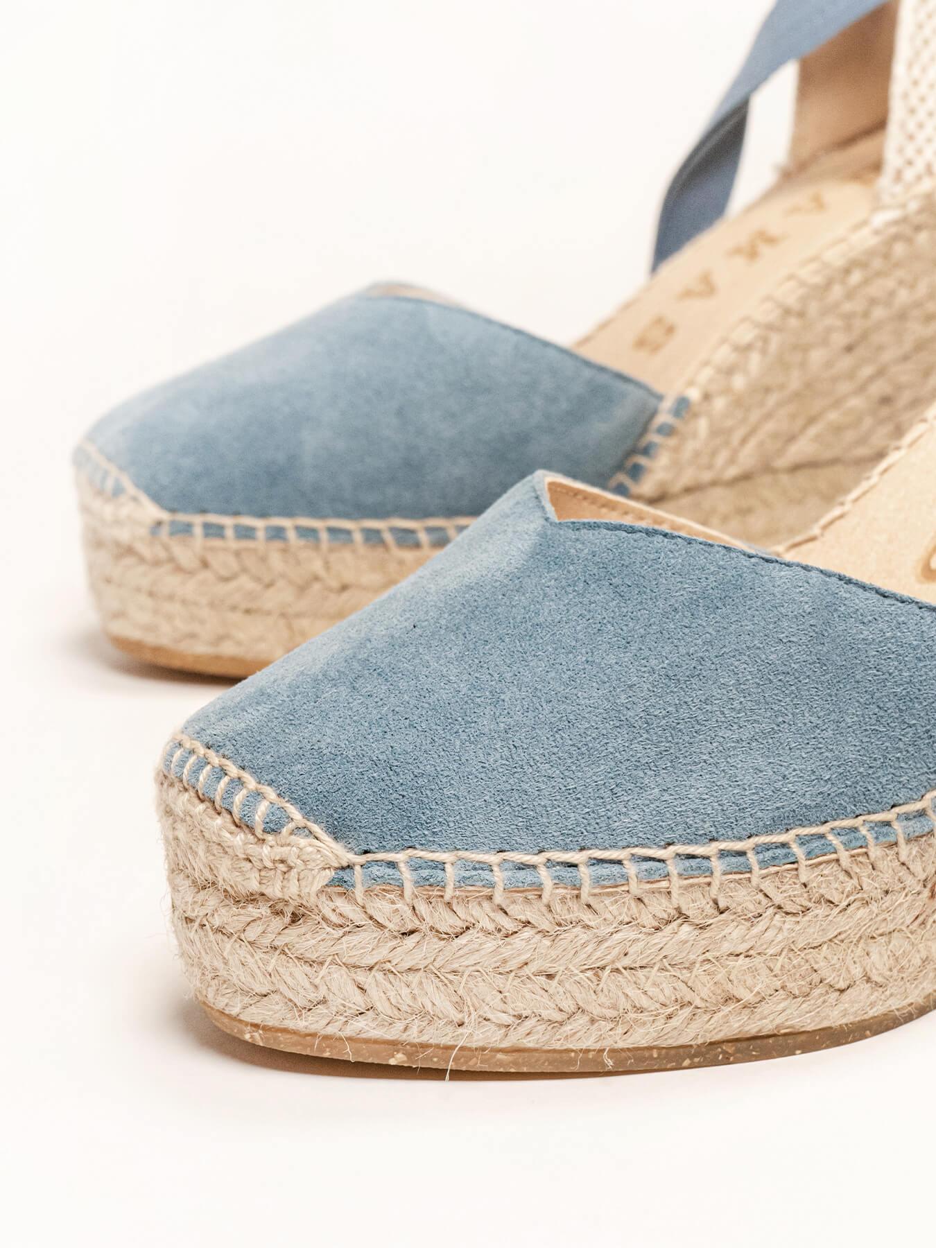 Sandália Anabela Alta Romero Camurça Azul Jeans