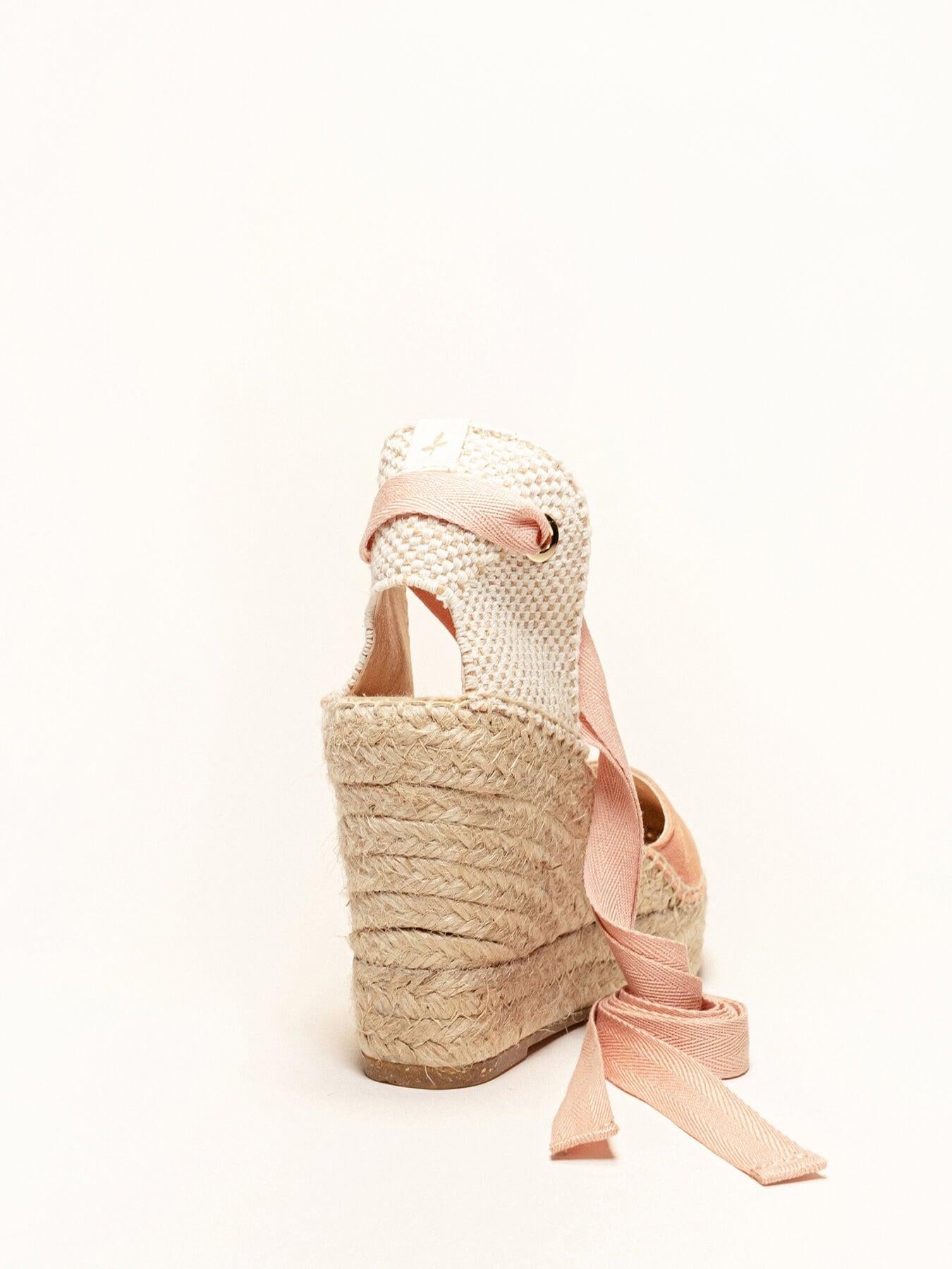 Sandália Anabela Alta Romero é o nosso modelo mais icônico. Uma sandália valenciana com decote coração e fitas que você poderá usar tanto com looks especiais quanto com os do dia a dia. Poderá dar um toque especial porque as fitas podem ser trocadas.