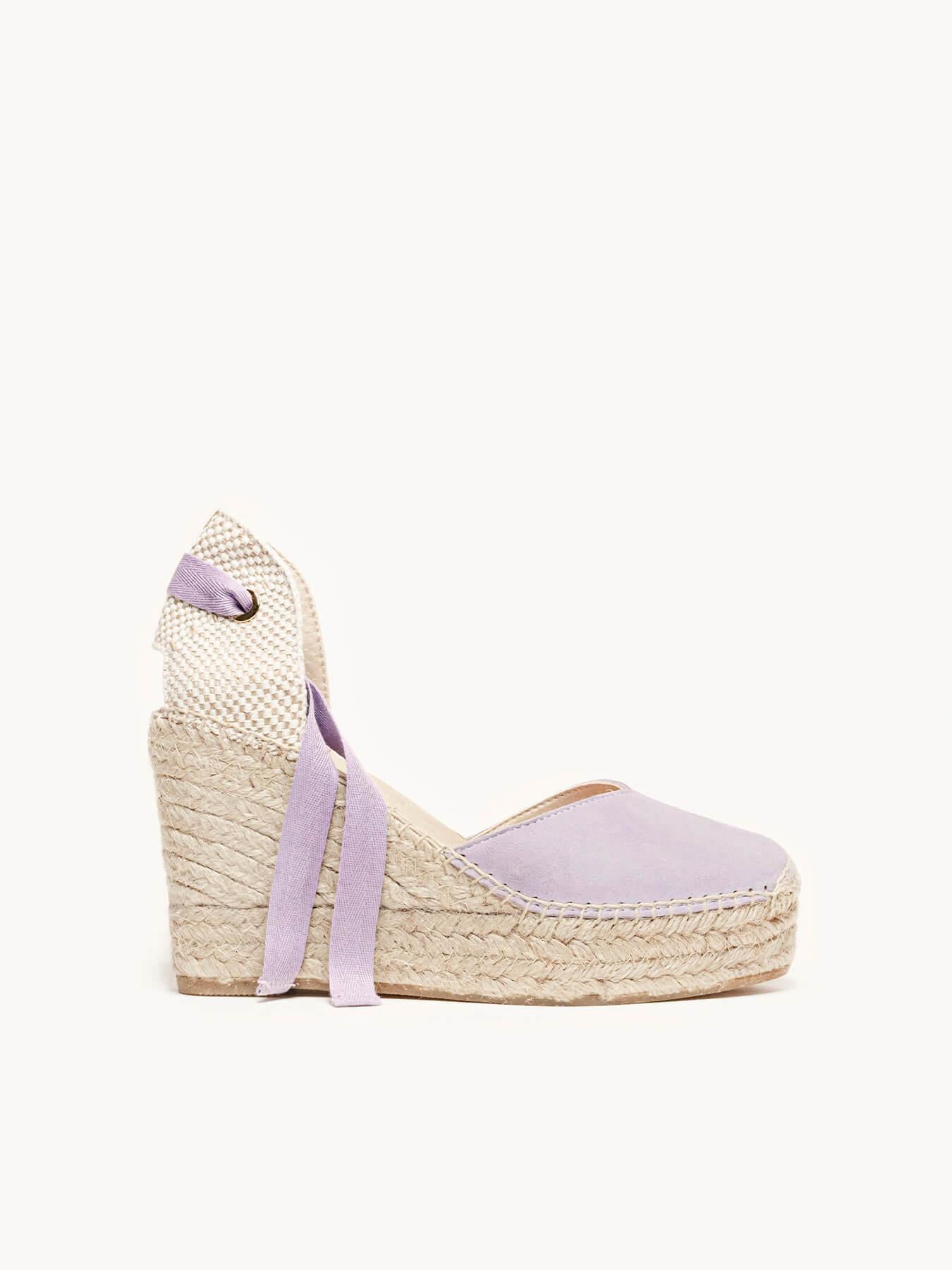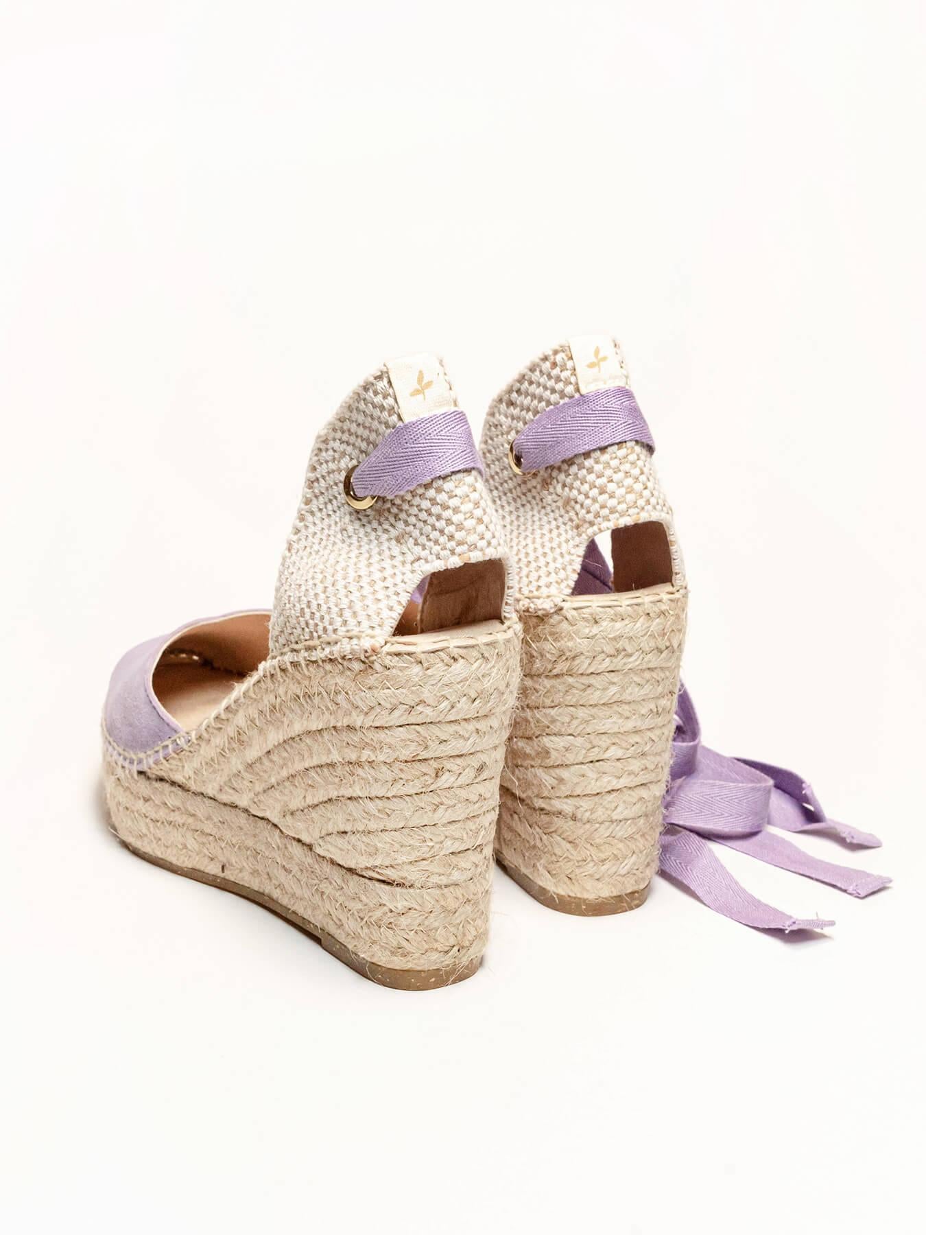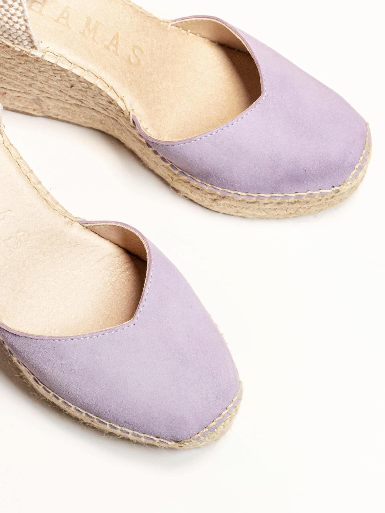 A sandália Romero de anabela alta é o nosso modelo mais icônico. Uma sandália valenciana com decote coração e fitas que você poderá usar tanto em looks especiais quanto no dia a dia. Você poderá dar um toque especial porque as fitas podem ser trocadas.