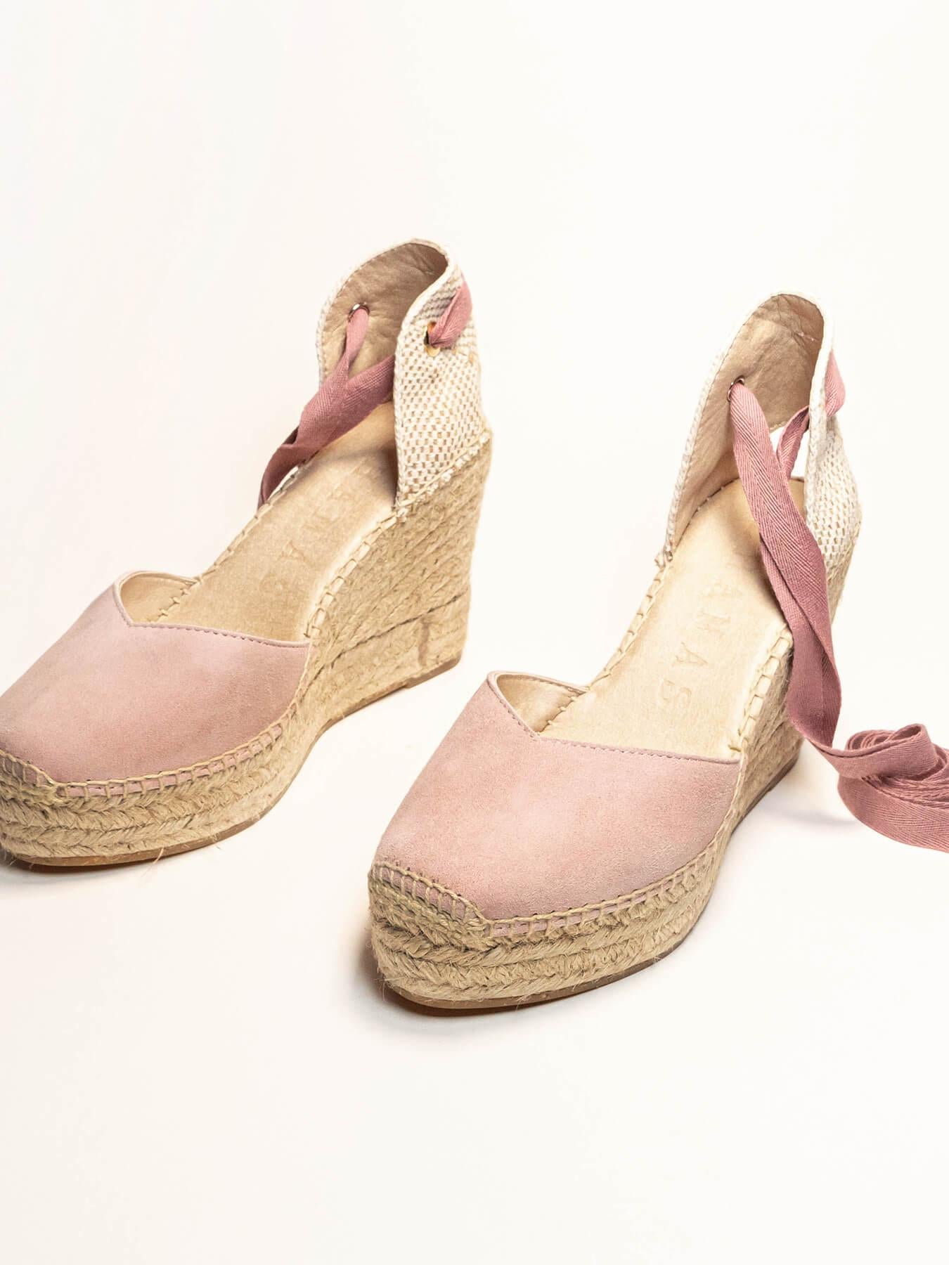 Sandália Anabela Alta Romero Camurça Rosa Claro