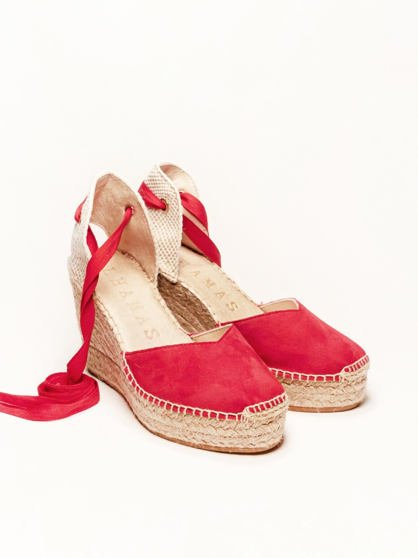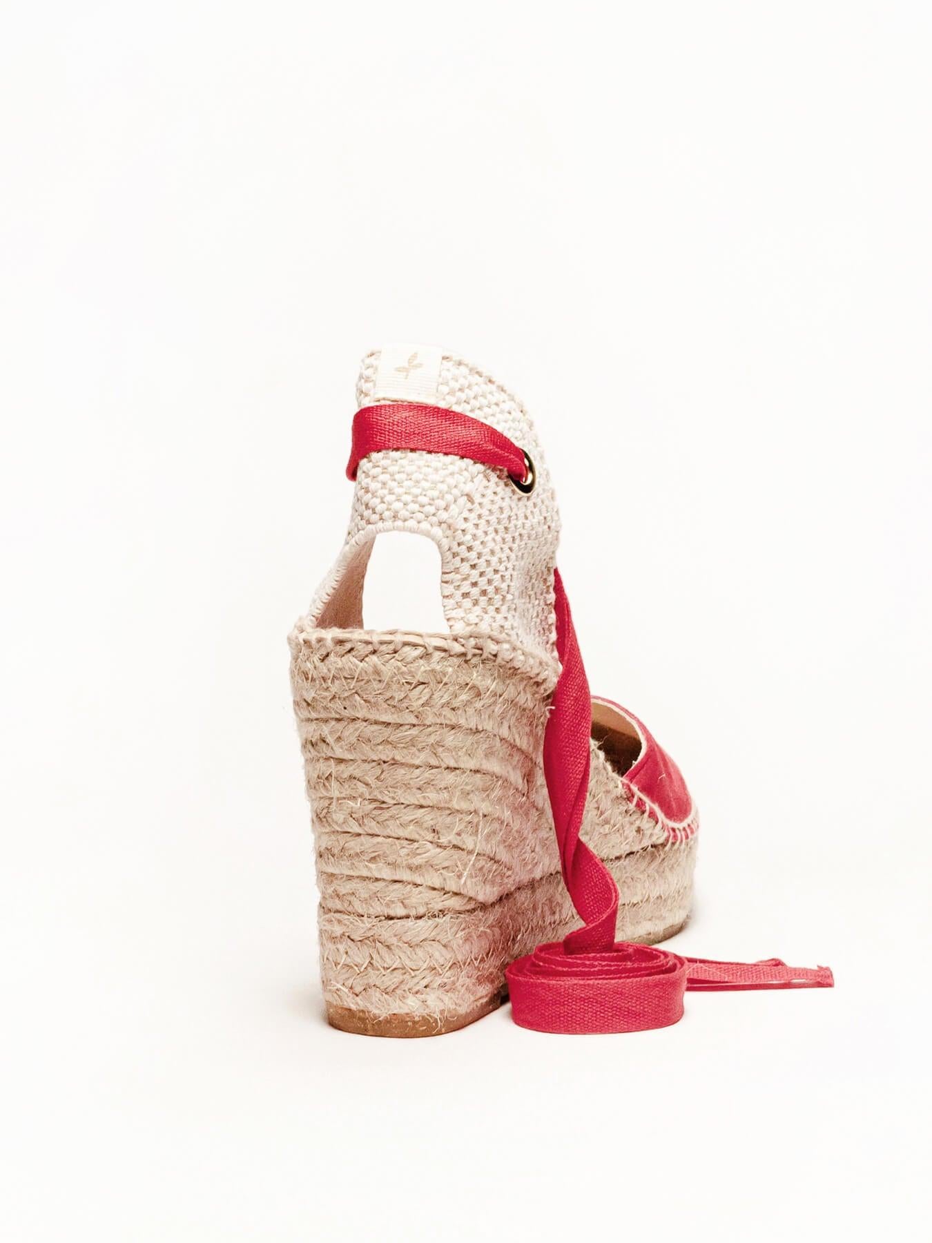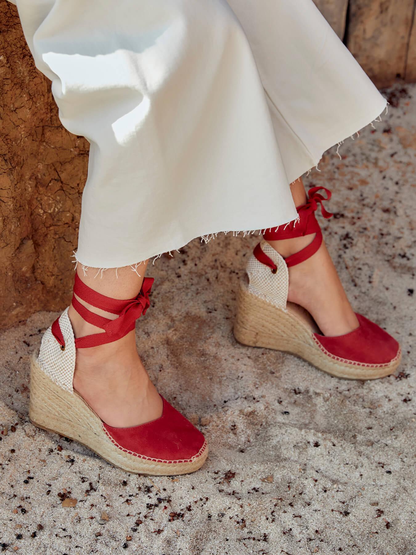A sandália anabela alta Romero é o nosso modelo mais icônico. Uma sandália valenciana com decote coração e fitas que você poderá usar com seus looks especiais e também no dia a dia. Você poderá dar um toque especial porque as fitas podem ser trocadas.