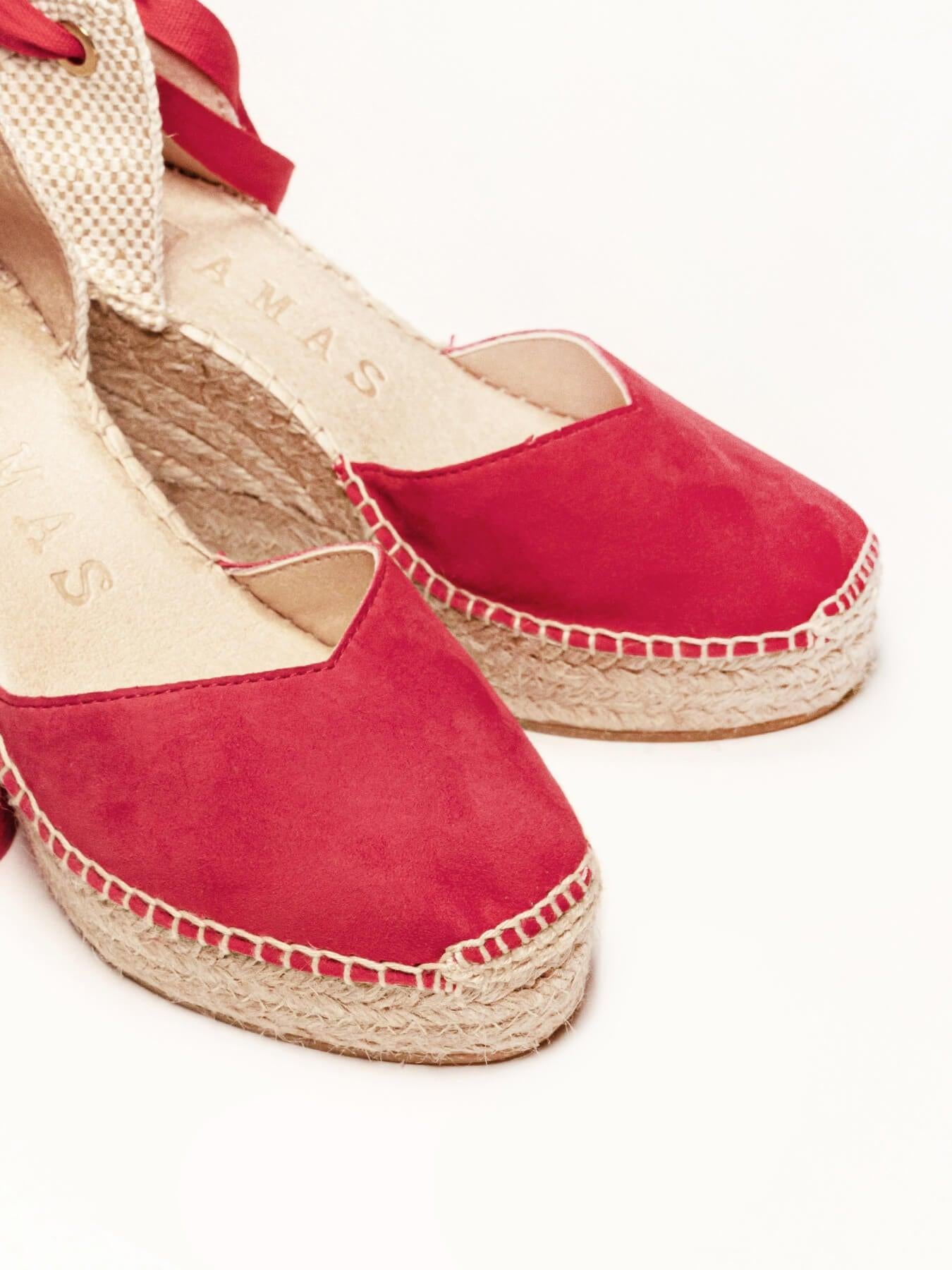 Sandália Anabela Alta Romero Camurça Vermelho