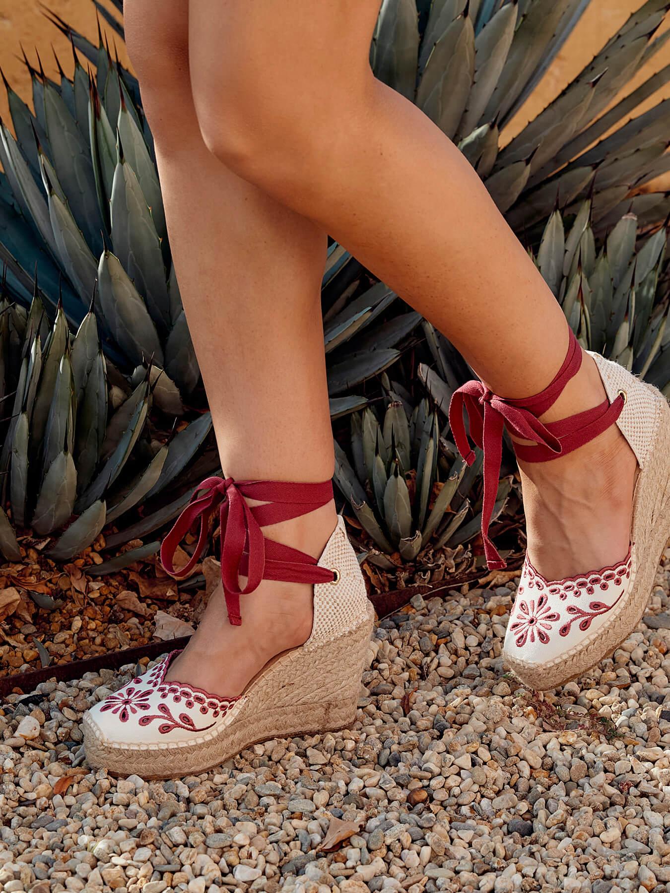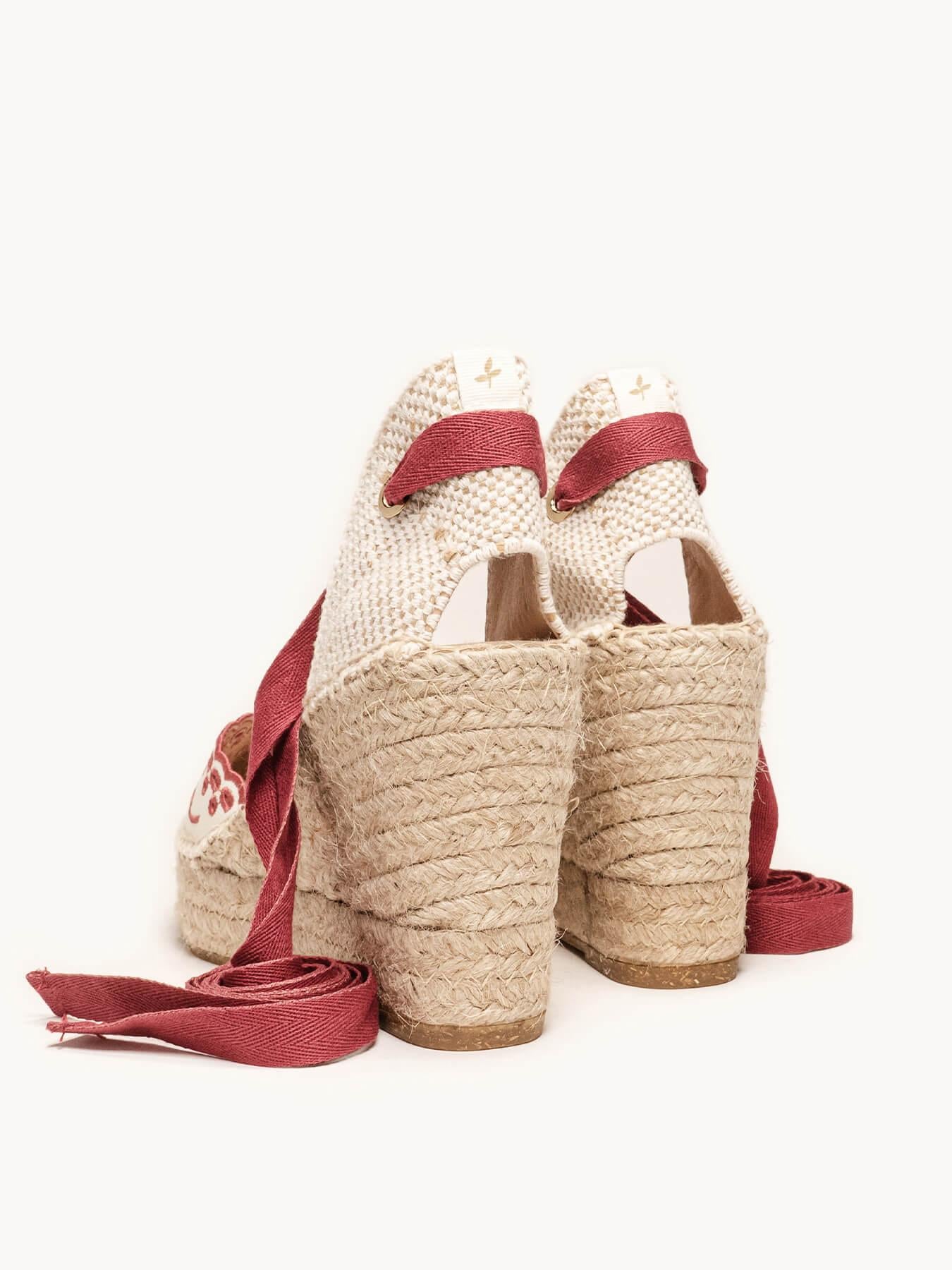 A alpargata anabela alta Romero é o nosso modelo mais icônico. Uma alpargata valenciana com decote em coração e fitas que você poderá usar com seus looks especiais e também com os do dia a dia. Você poderá dar um toque especial porque as fitas podem ser trocadas.