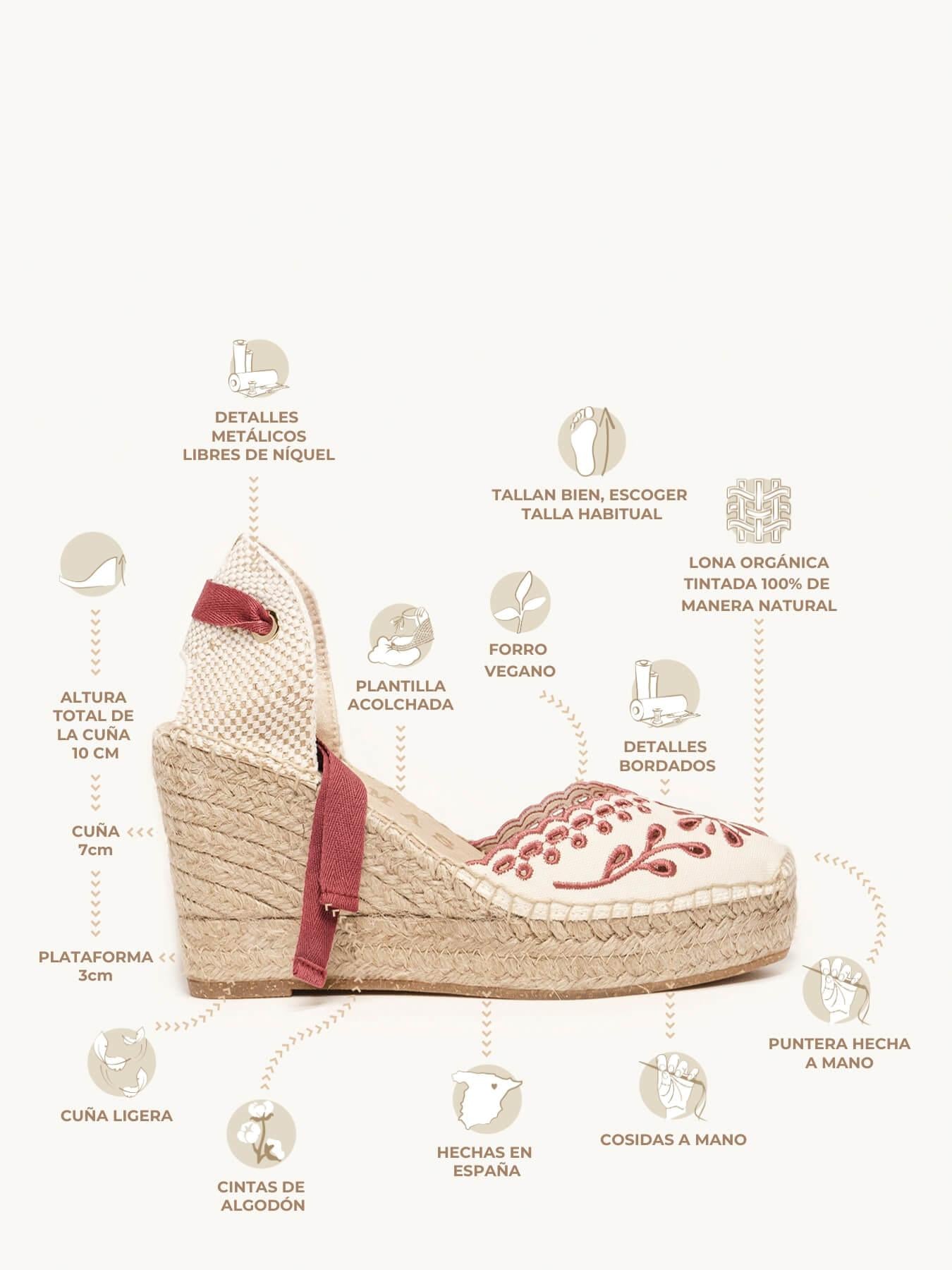 - Anabela de trança de Juta natural com sola de borracha reciclada misturada com fibras naturais.