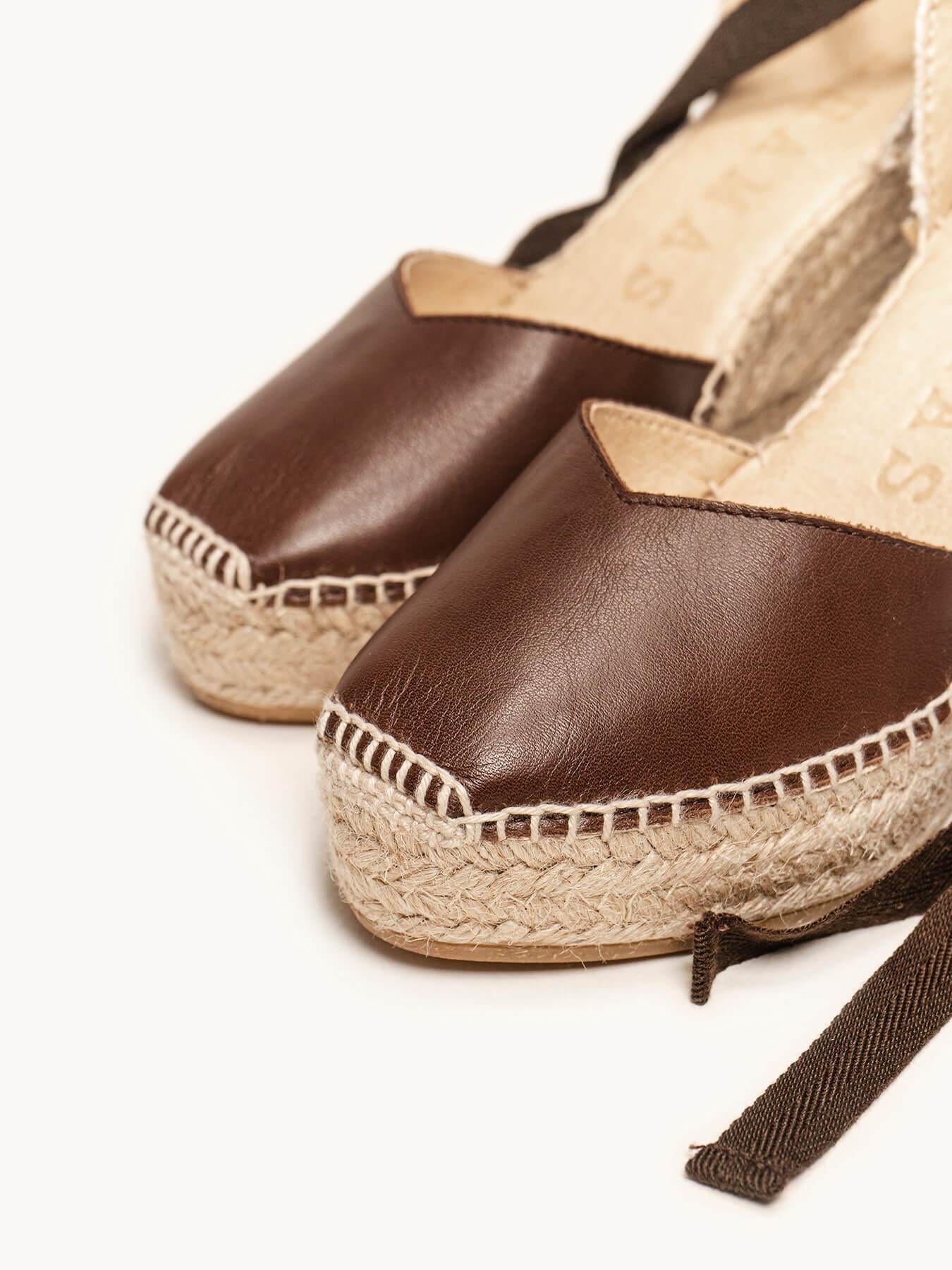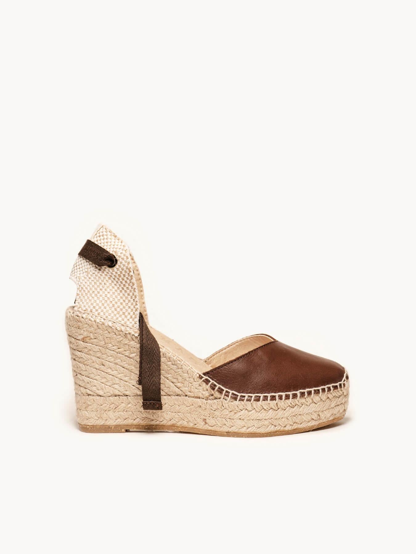 Sandália Anabela Alta Romero Napa Marrom Escura