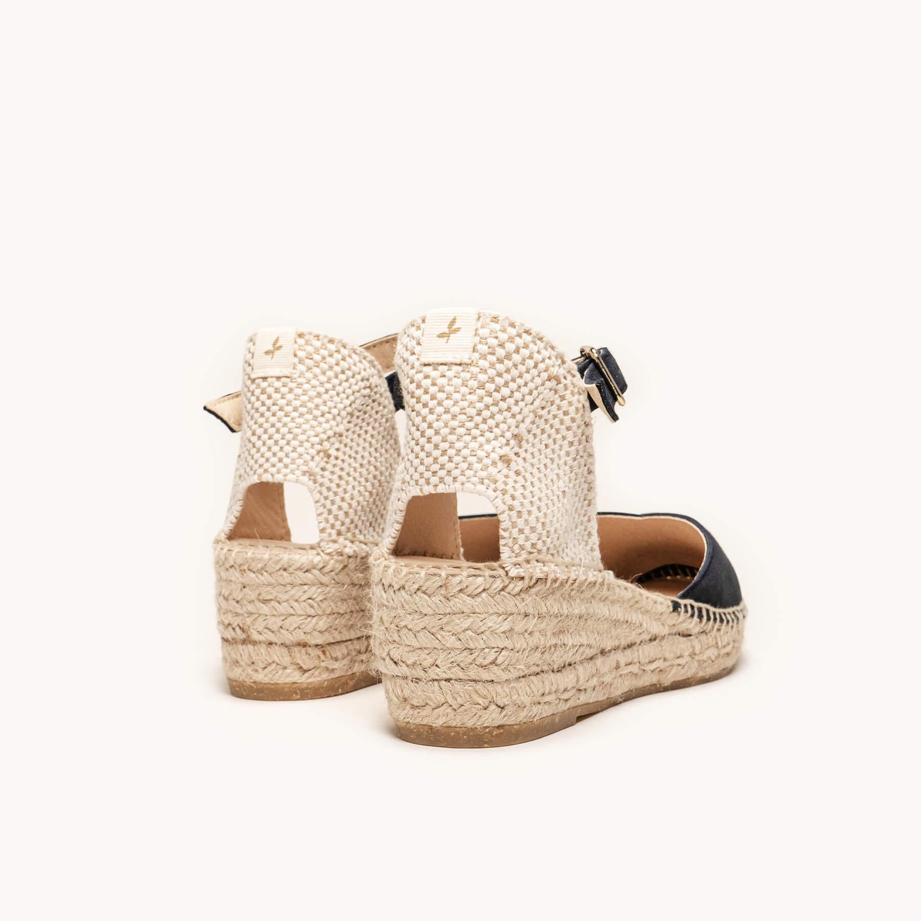 Sandália Anabela Baixa Jara Camurça Azul Marinho