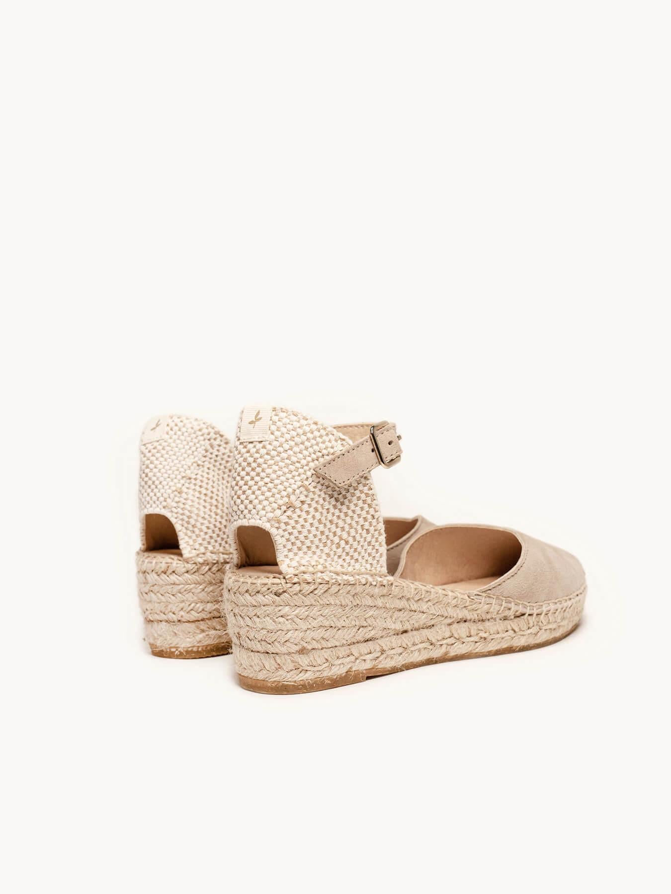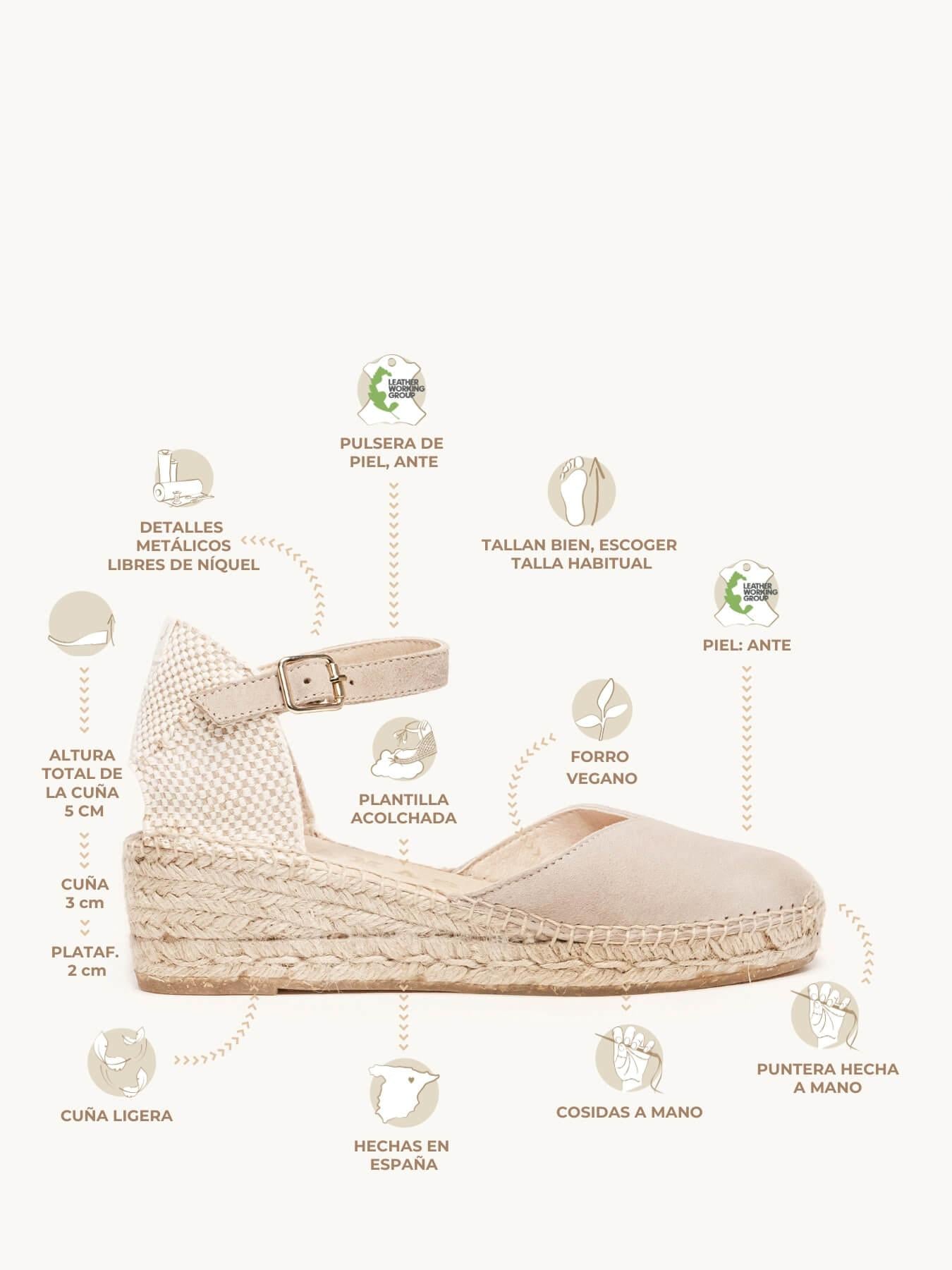 - Anabela trançada de juta natural com sola de borracha reciclada, misturada com fibras naturais