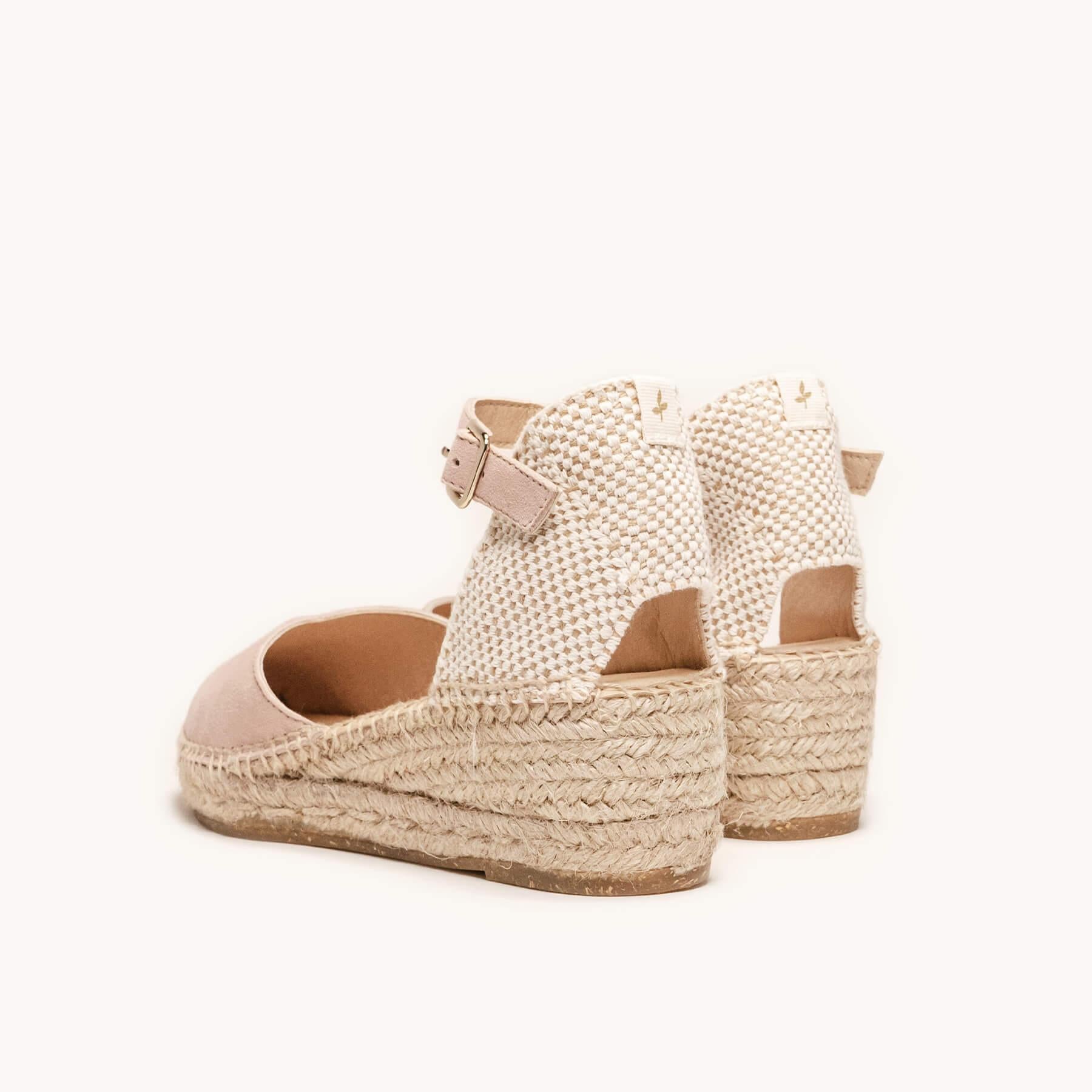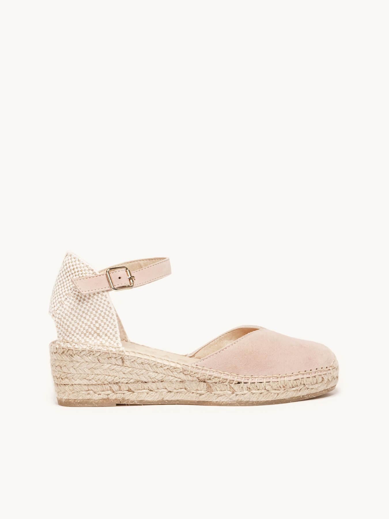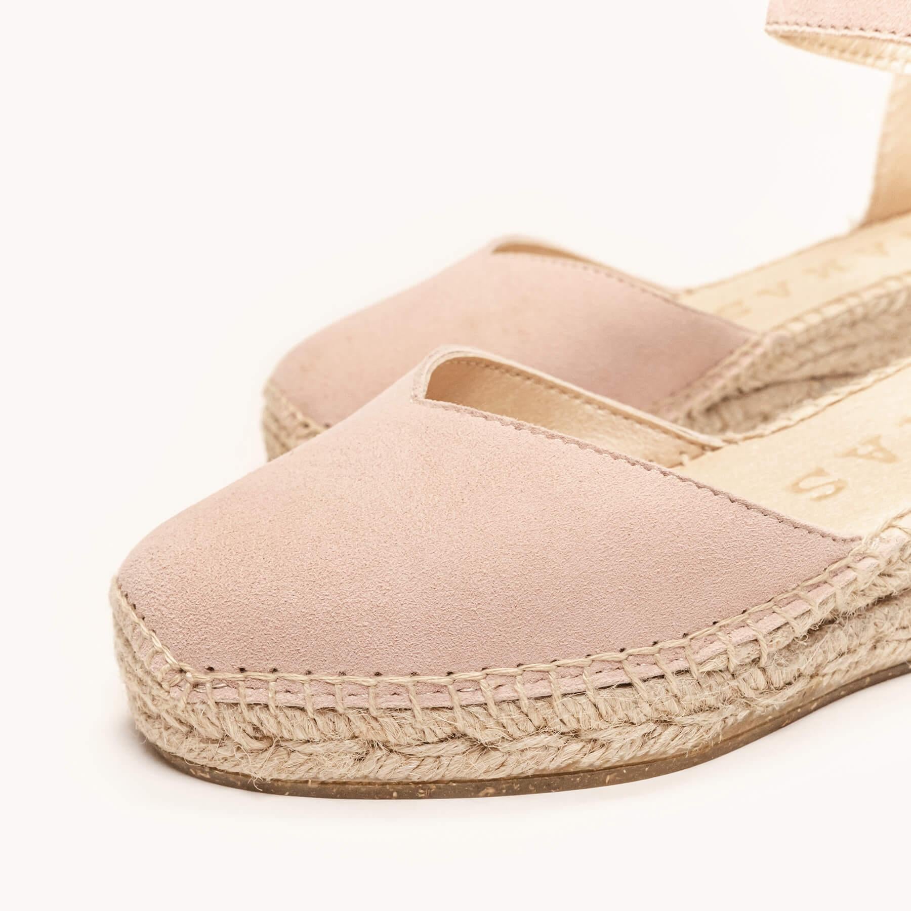Sandália Anabela Baixa Jara Camurça Rosa Claro