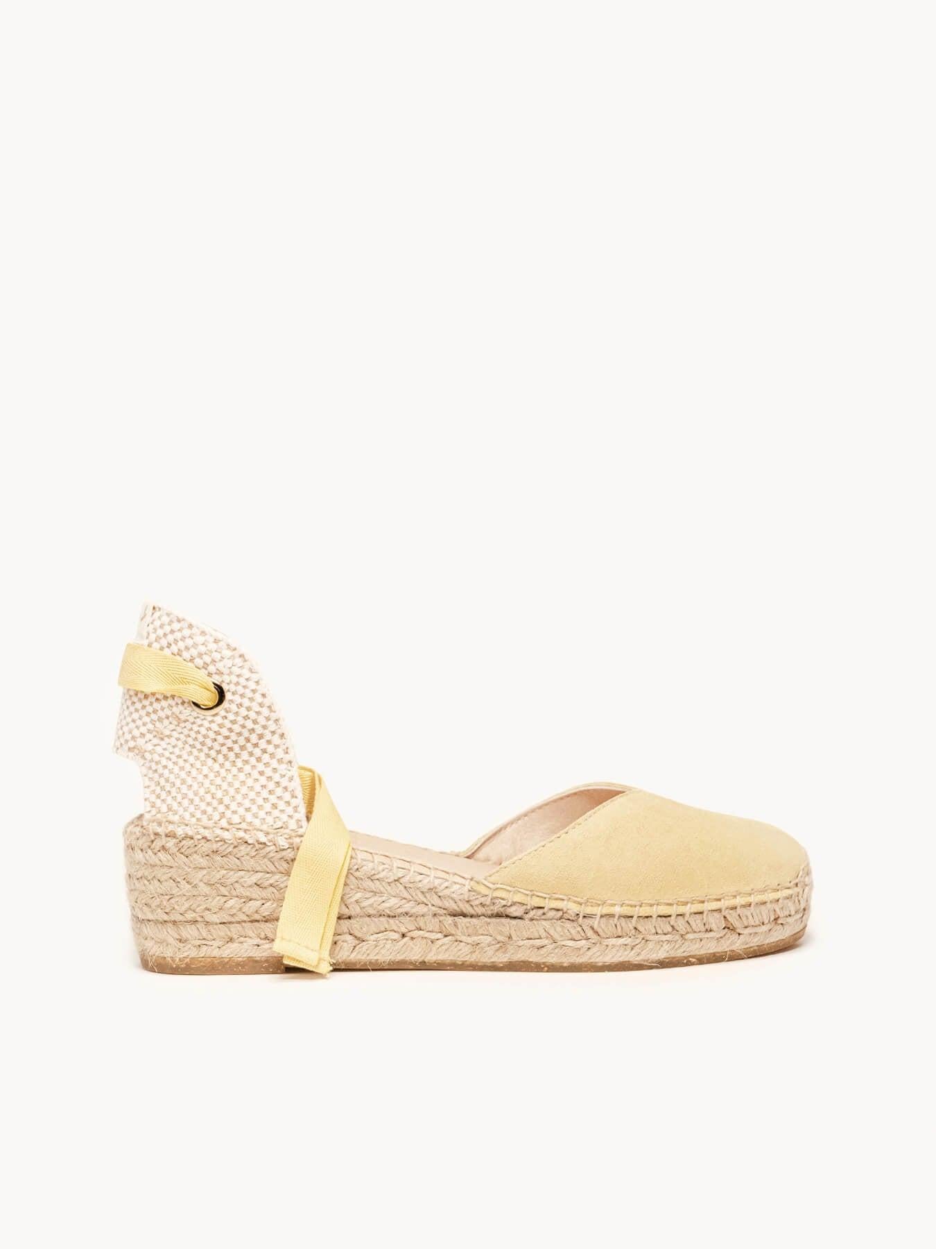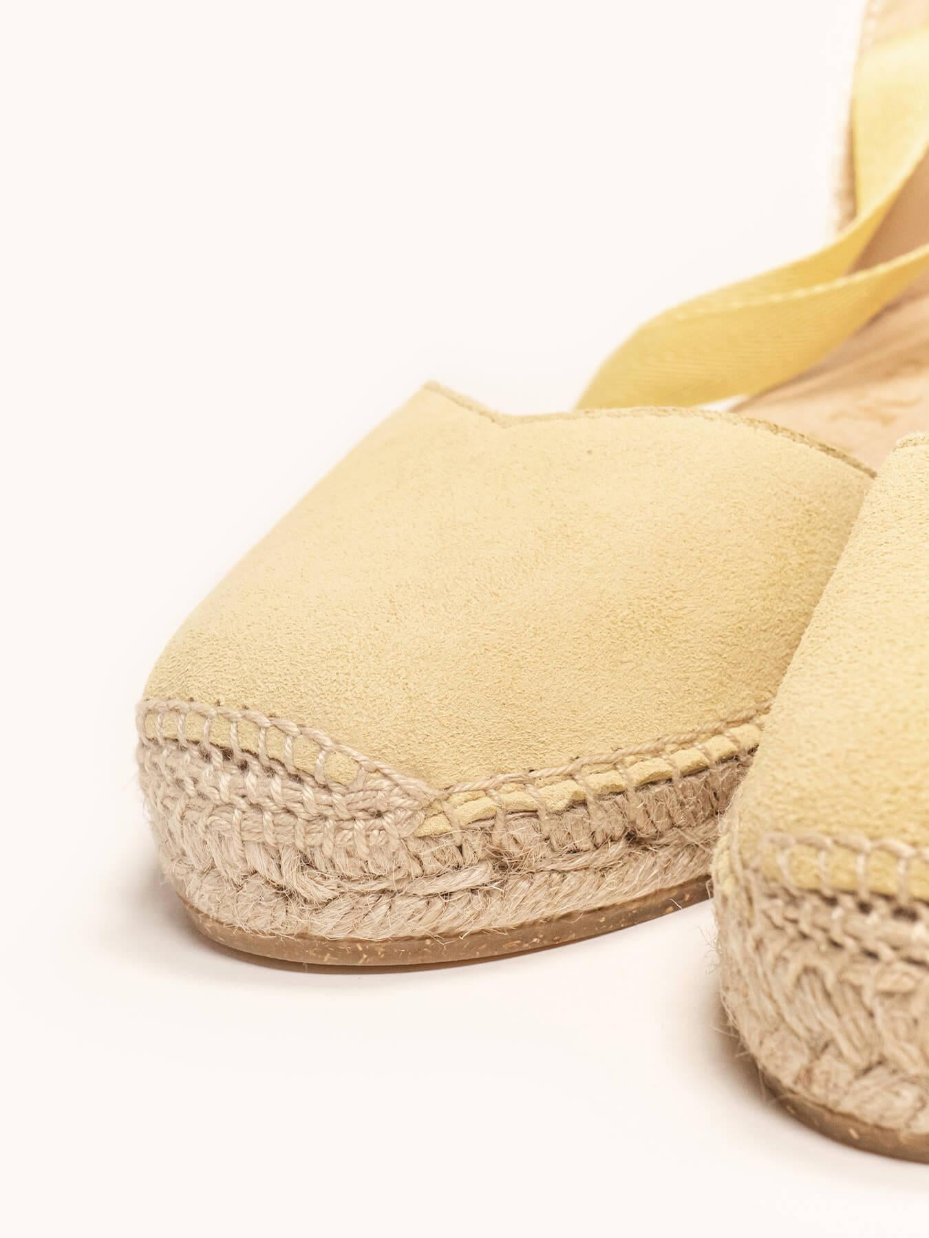 Sandália Anabela Baixa Romero Camurça Amarelo
