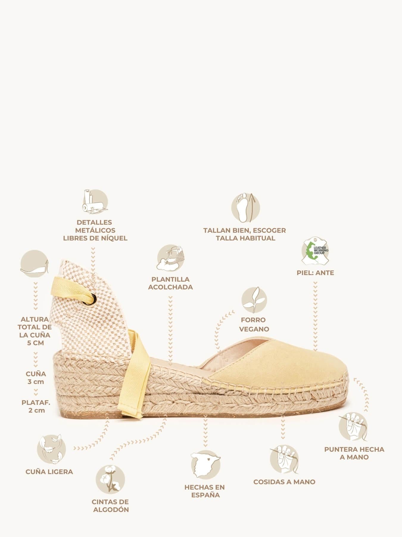 A sandália anabela baixa Romero é o nosso modelo mais icônico. Uma sandália valenciana com decote coração e fitas que você poderá usar com seus looks especiais e também no dia a dia. Você poderá dar um toque especial porque as fitas podem ser trocadas.
