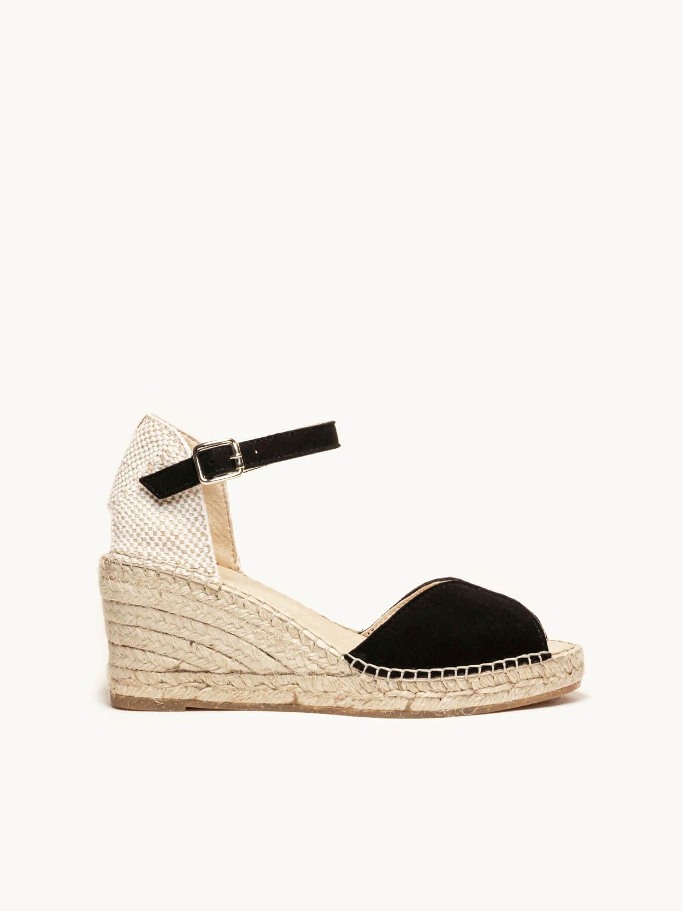 Sandália Anabela Média Alelí Camurça Preta