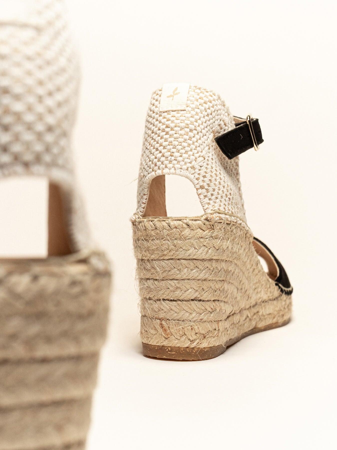 - Plataforma de trança de juta natural com sola de borracha reciclada, misturada com fibras naturais